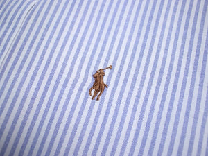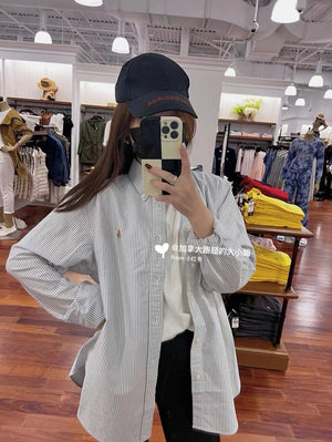 **Version Horse Logo Oxford Striped Embroidered Breasted Lapel Long Sleeve Casual Shirt Men and Women# R42 Polo Ralph Lauren Ralph Lauren Oxford Striped Logo Embroidered Breasted Lapel Long Sleeve Casual Shirt
