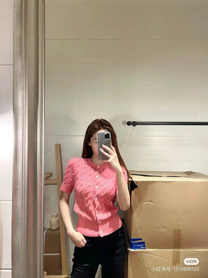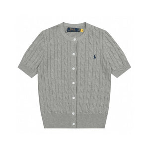 Ralph Lauren T-shirt Top Version Standard Thick Twisted Cardigan Coat Summer Classic Twist Knitted Short Sleeve T T-shirt