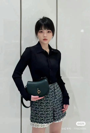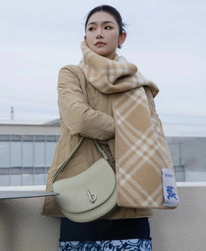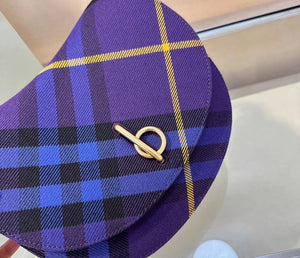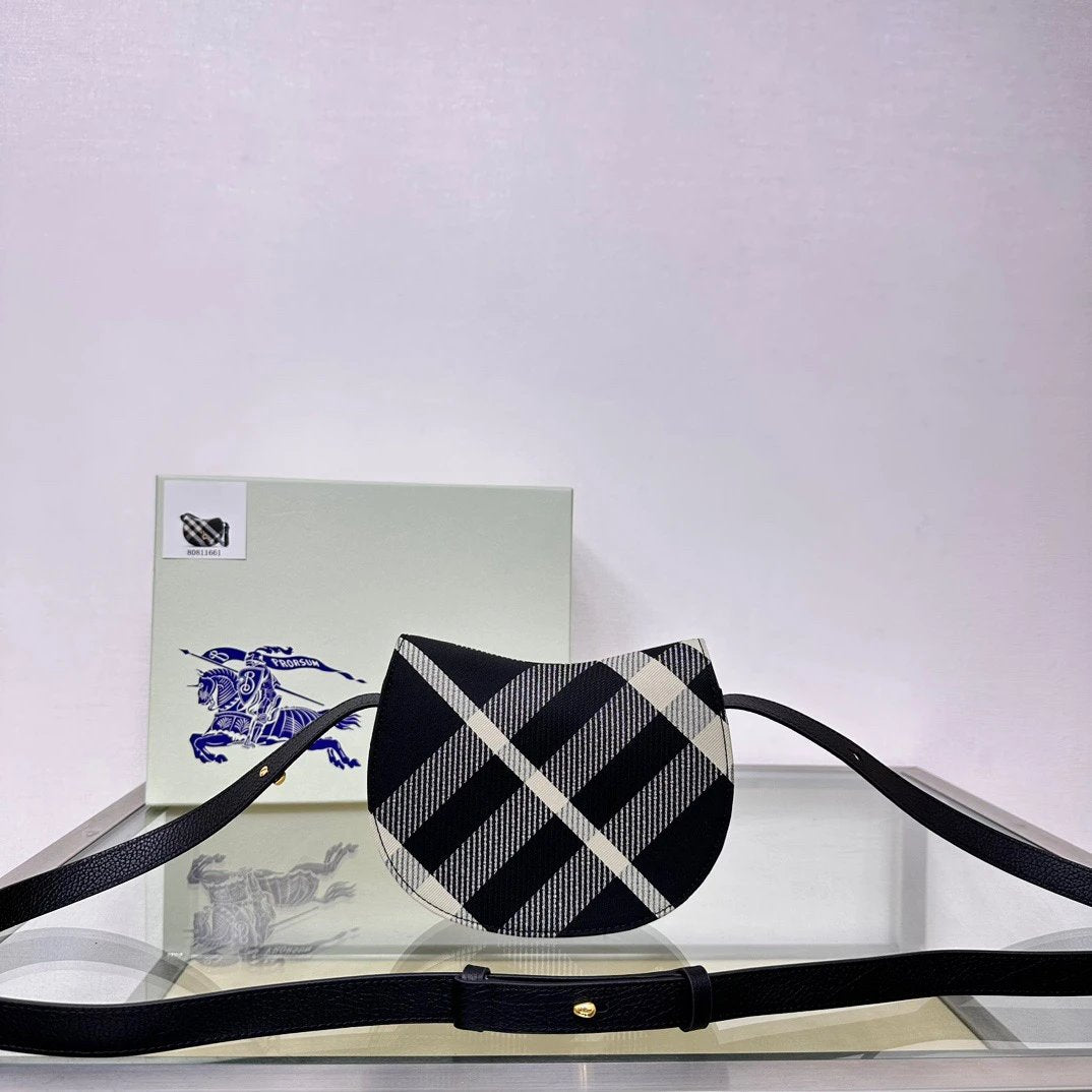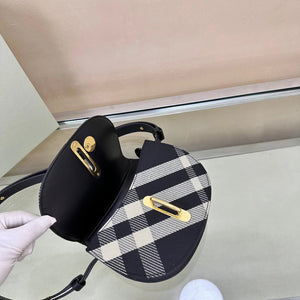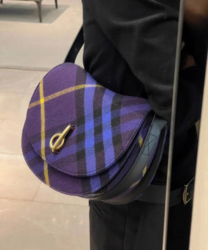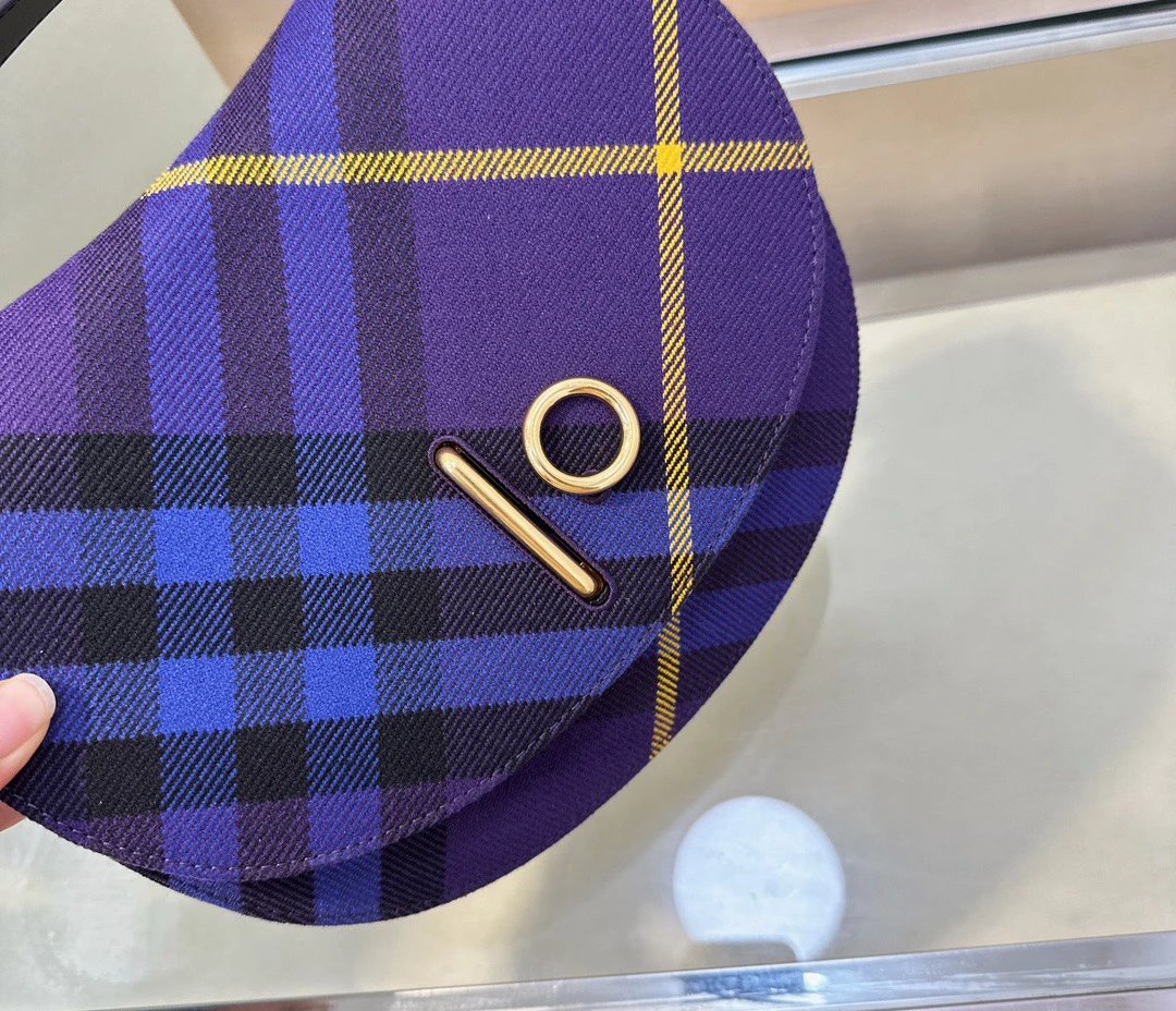 B's Latest Wool Upright Bags, 26cm Refined from Italian Workshop, Decorated with Worsted Burberry Plaid. The Design of the Curved Outline Is Inspired by the Rocking Horse in Childhood, and the Flip Opening and Closing Are Equipped with B- Shaped Accessories. With Leather Shoulder Straps, You Can Adjust the Backpack and Messenger Bags Shapes.