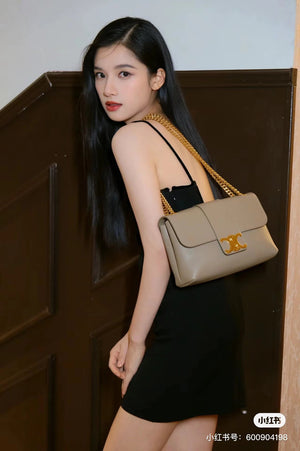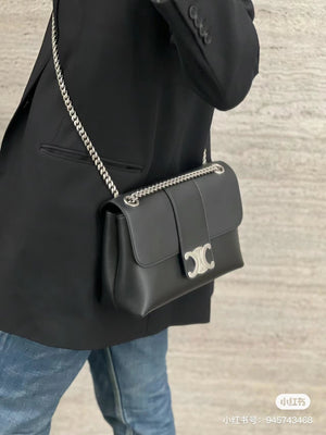 Victoire Handbag Is a 24-New Product Line, Which Means "Victory". the Iconic Metal Triomphe Lock Embellishes the Exquisite Bag Body to Show the Modern Posture.⛓️. High-Grade Grain Surface and Soft Hand Feeling, Lightweight and Large-Capacity Chain Design?️One Shoulder?️Crossbody Snap Button Closure!
