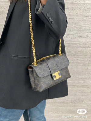 Celine women's bag Top version 【Super Original Leather High Version】24New Women's Bag VICTOIRE Handbag Iconic Metal TRIOMPHE Lock Arc De Triomphe Victory Bag victoire Chain Bag