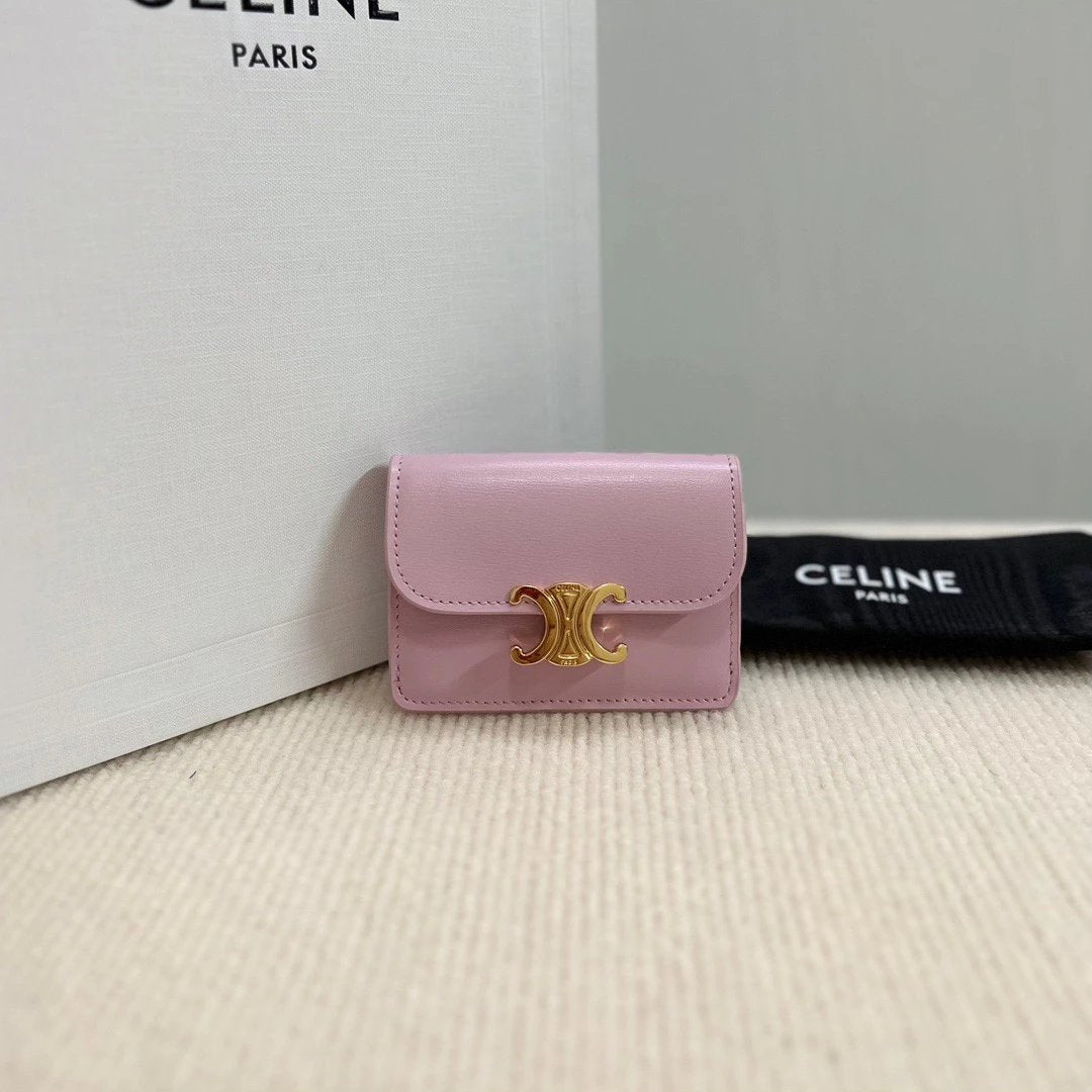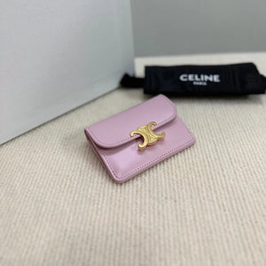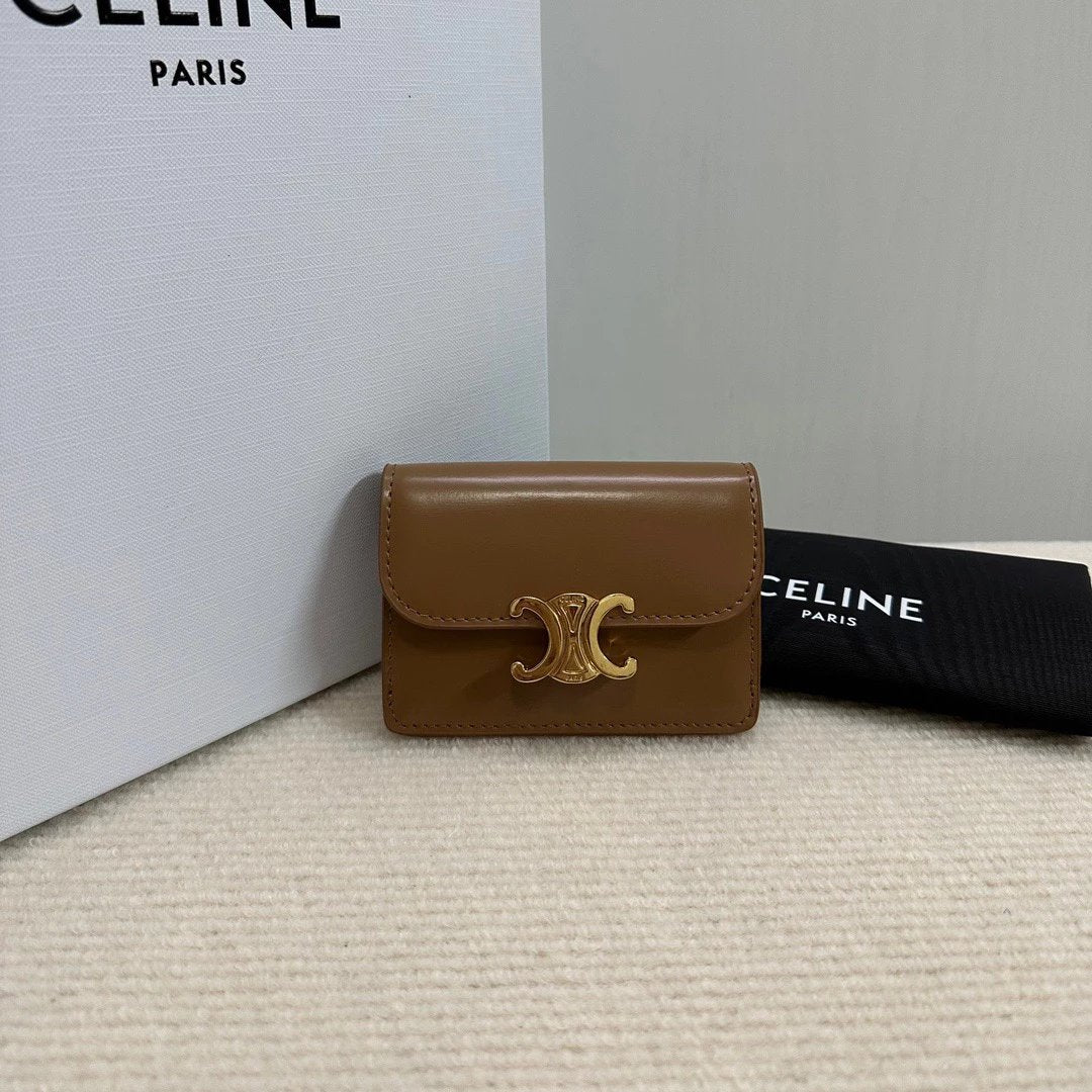 Celine Wallet Top version 【Super Original Leather】New Arc De Triomphe Card Holder Card Holder Card Clamp Cow Leather Lining TRIOMPHE Snap Button Closure,Built-in4One Card Slot,1One outside Card Slot.Easy to Carry outside