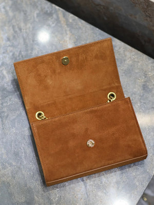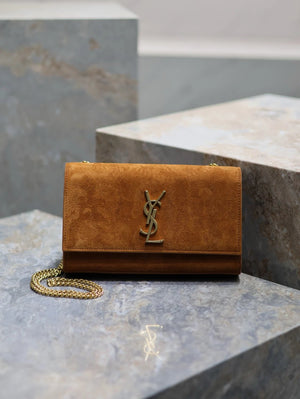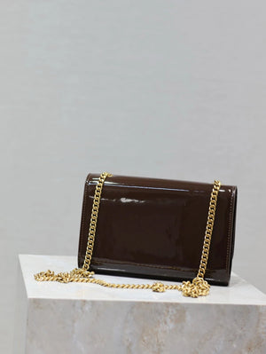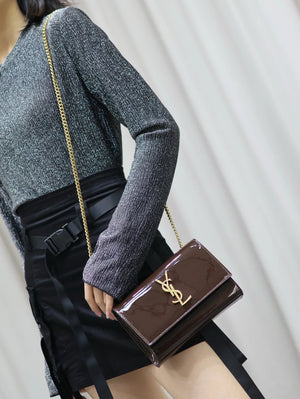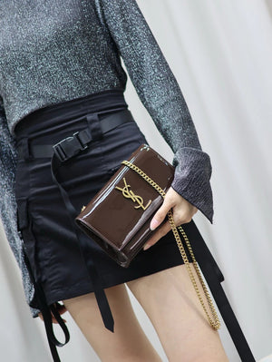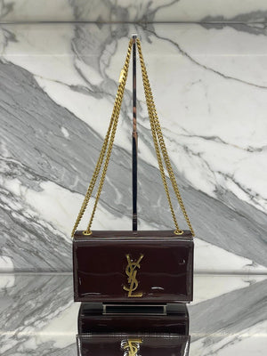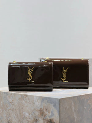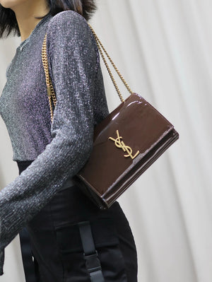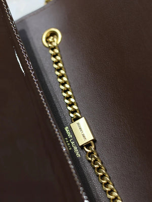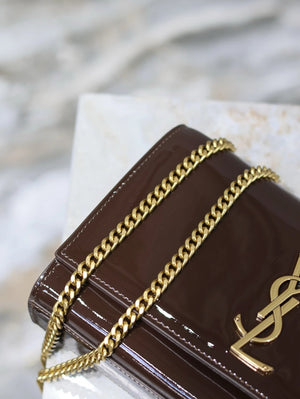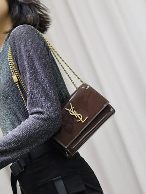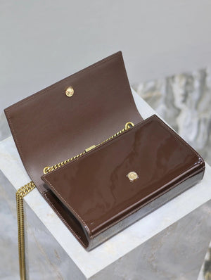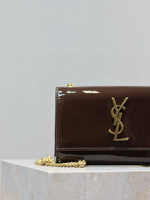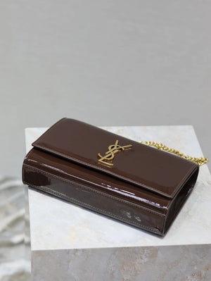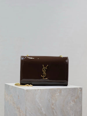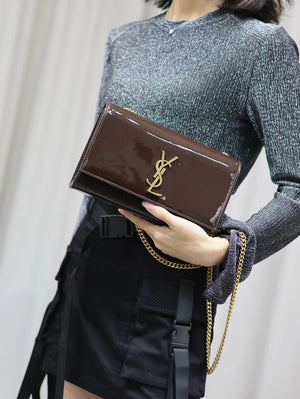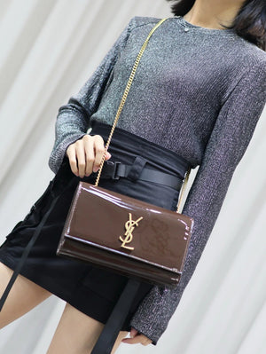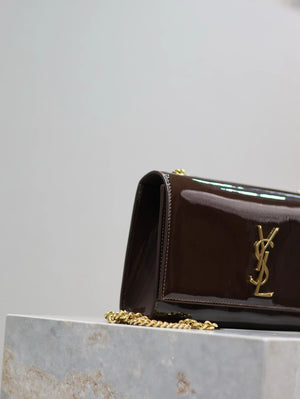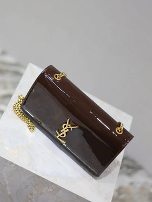YSL Women's Bag Top version 【Super Original Leather】New Purplish Red Patent Leather KATE Chain Bag Flap Bag Counter Latest Color Purplish Red20cm Chain Bag Flap Bag kate Matte Suede Clutch24cm Envelope Package Mobile Phone Bag469390364021