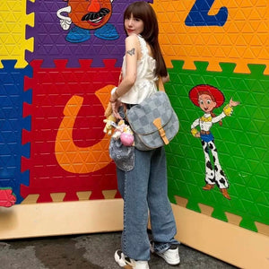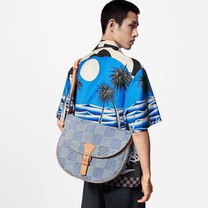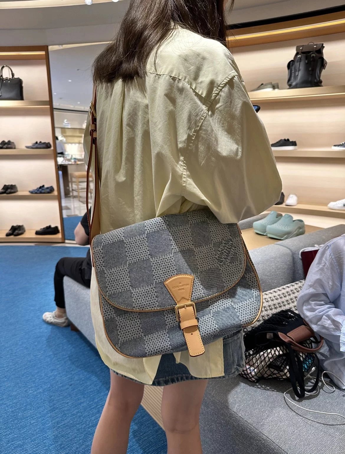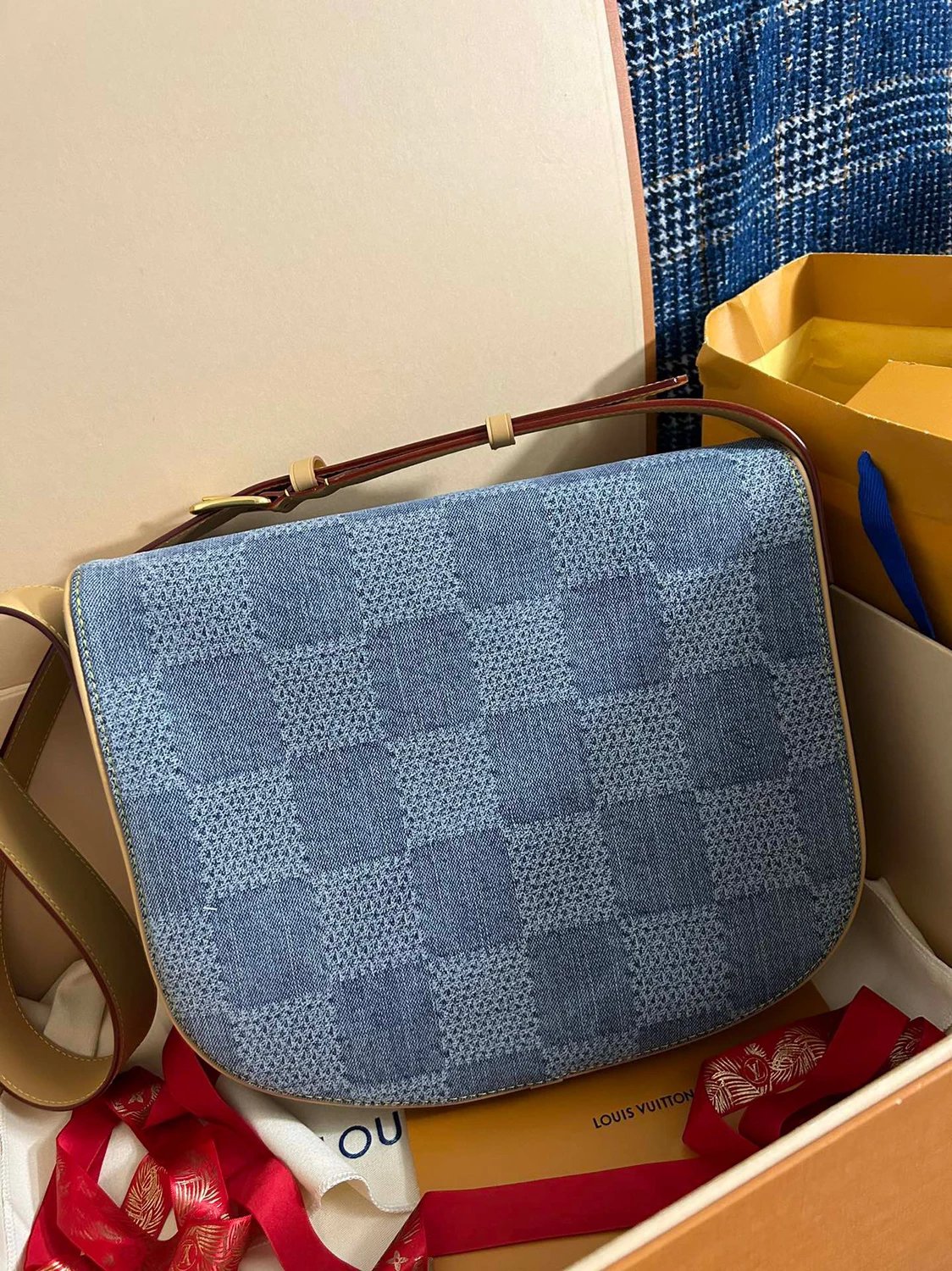 Louis Vuitton LV Men's Bag Top version 【Super Version New Kowloon Leather】Denim Jean Bag Series Montsouris Medium Postman Messenger Bag N40743Denim Plaid Messenger Bag Men's Retro Style Trendy Fashion Men's Bag Women's Bag Crossbody Bag Shoulder Bag Casua
