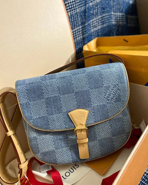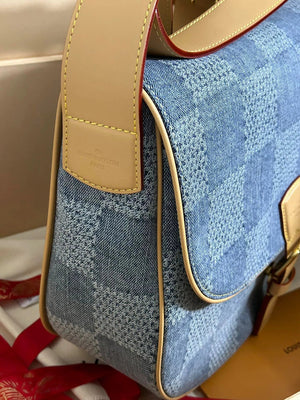 N40743. This Montsouris Medium Messenger Bag Uses Damier Denim 3D Cotton Canvas to Shape a round Profile, Making the Chic Plaid Texture Present a Soft Texture. Montsouris Buckles and Shoulder Straps Touch Classic Details.