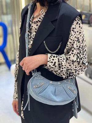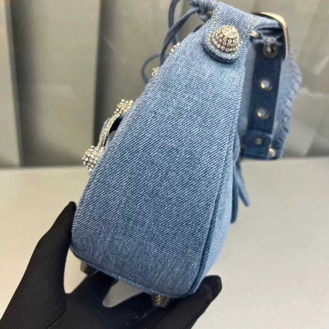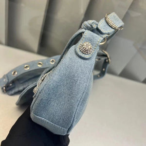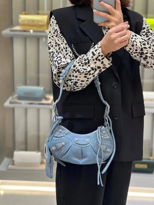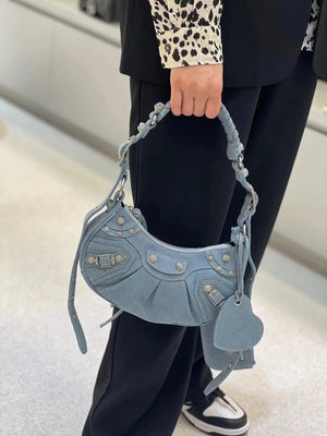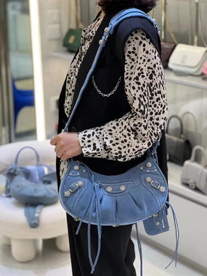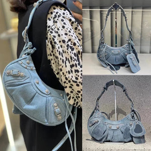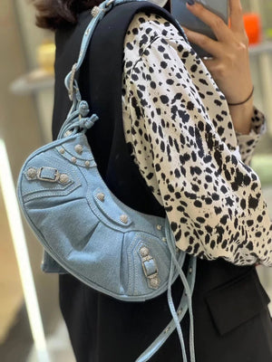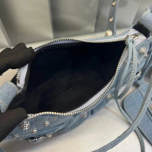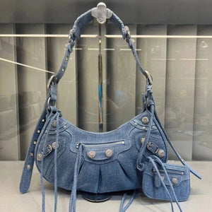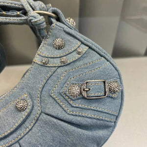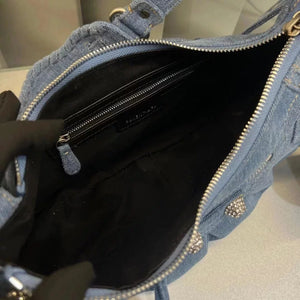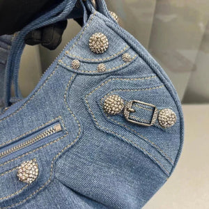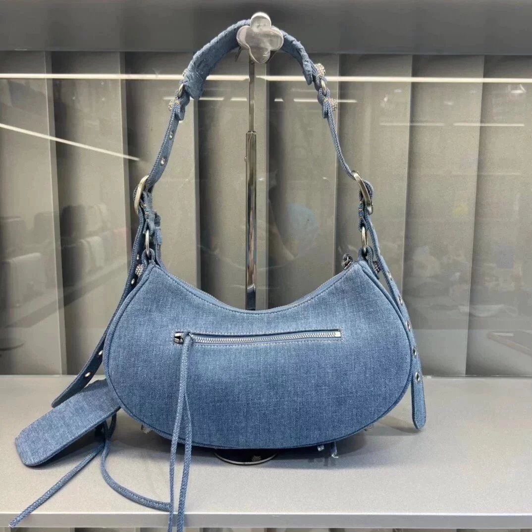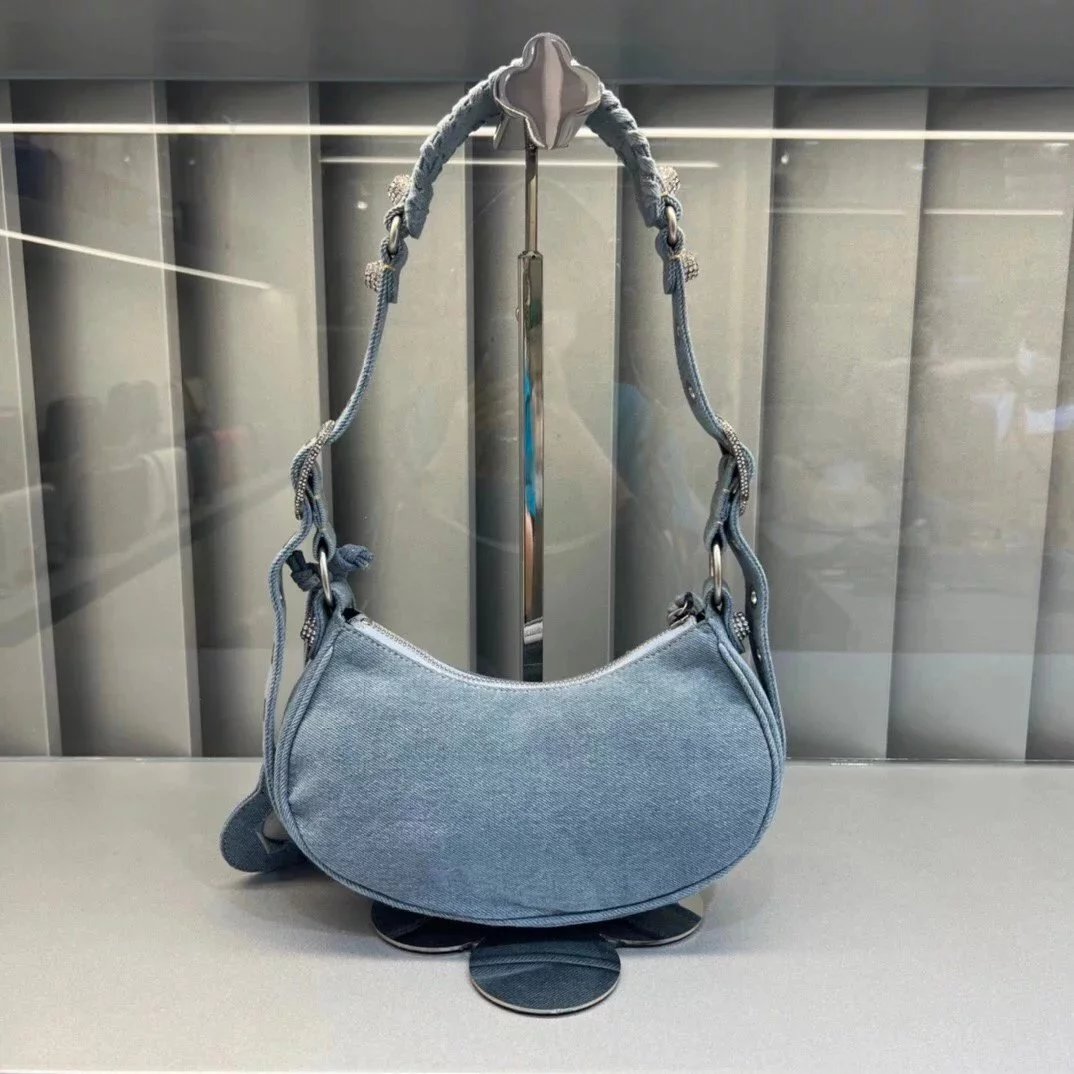 Balenciaga Bag Top version 【**Surrogate Shopping Edition】2022Spring and Summer New Denim Series LeCagole Hobos Dumpling Bag Motorcycle Bag with Diamond Denim Underarm Bag