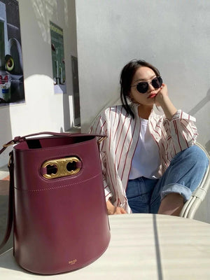 Celi_ne Bucket Bag Show Maillon_f/W2020 Autumn and Winter Calfskin Bucket Barbie Lisa Endorsement