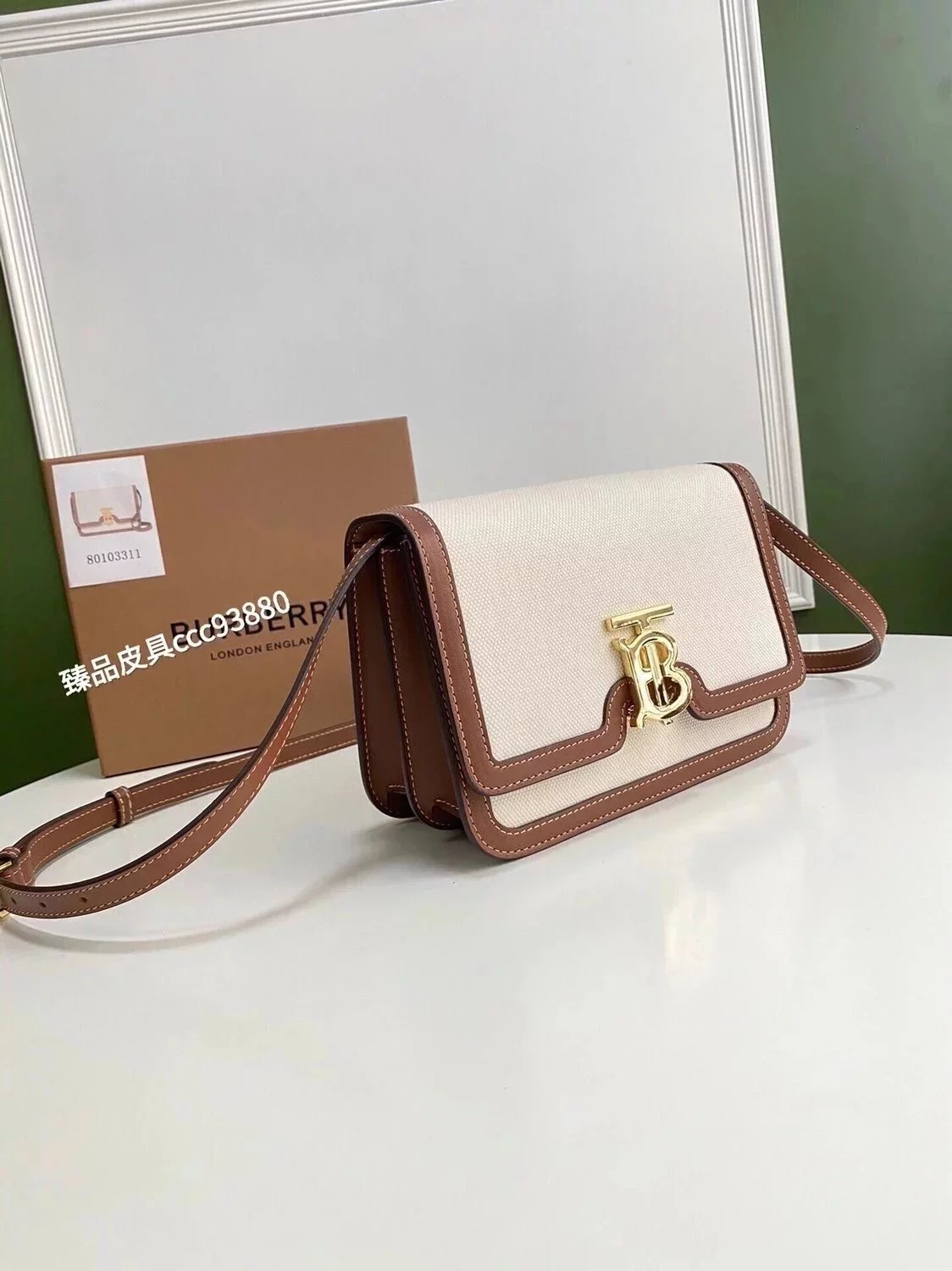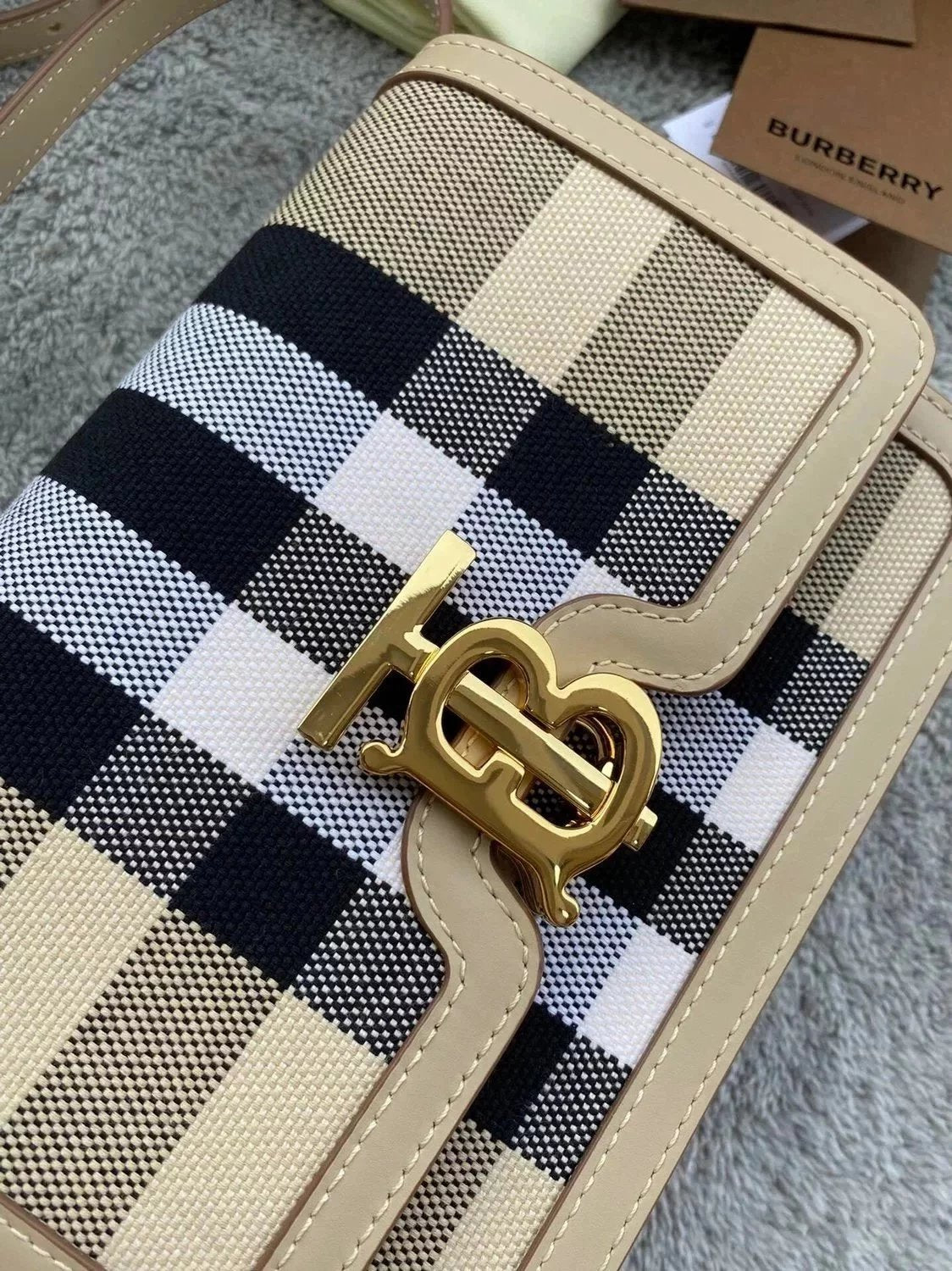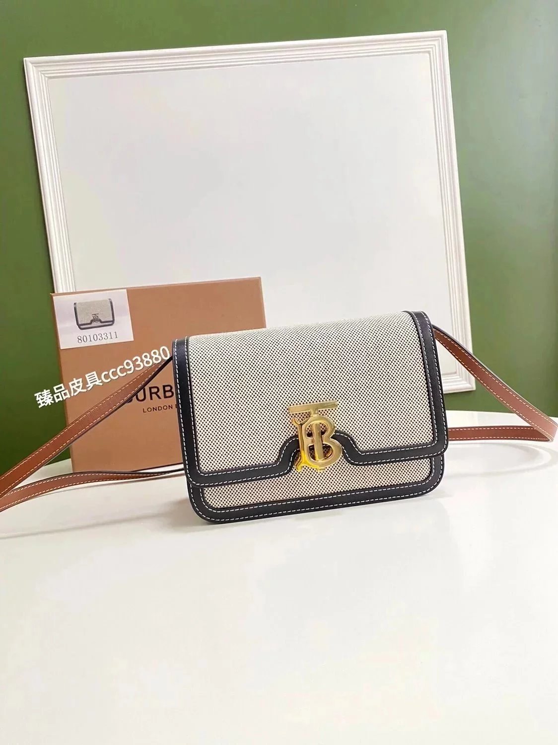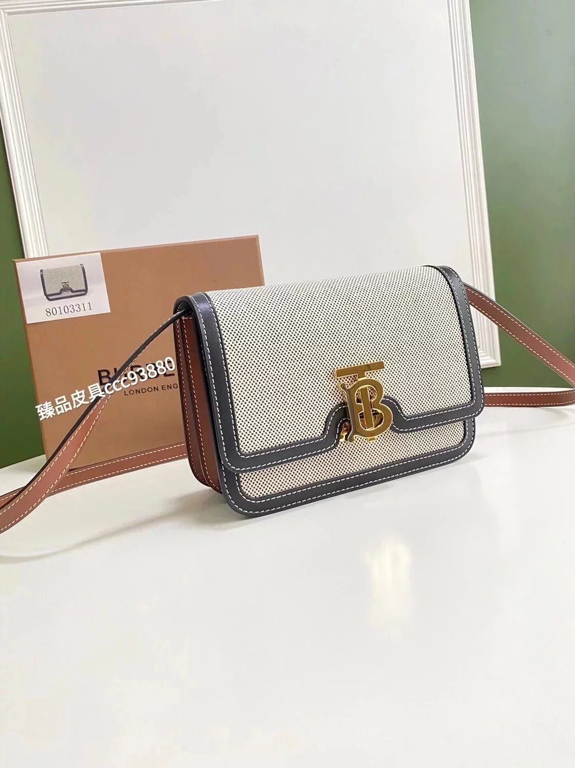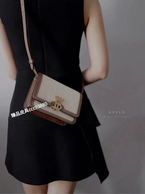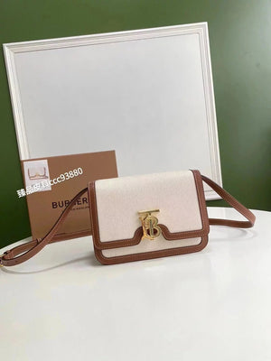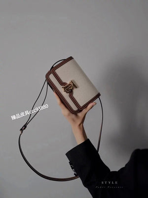 Burberry Women's Bag Top version 【Surrogate Shopping Edition】TB Bag New TB Twist Lock Bag Canvas Stitching Leather Crossbody Bag Women's Bag BOX Square Bag Stewardess Bag Box Bag Messenger Bags New Women's Bag