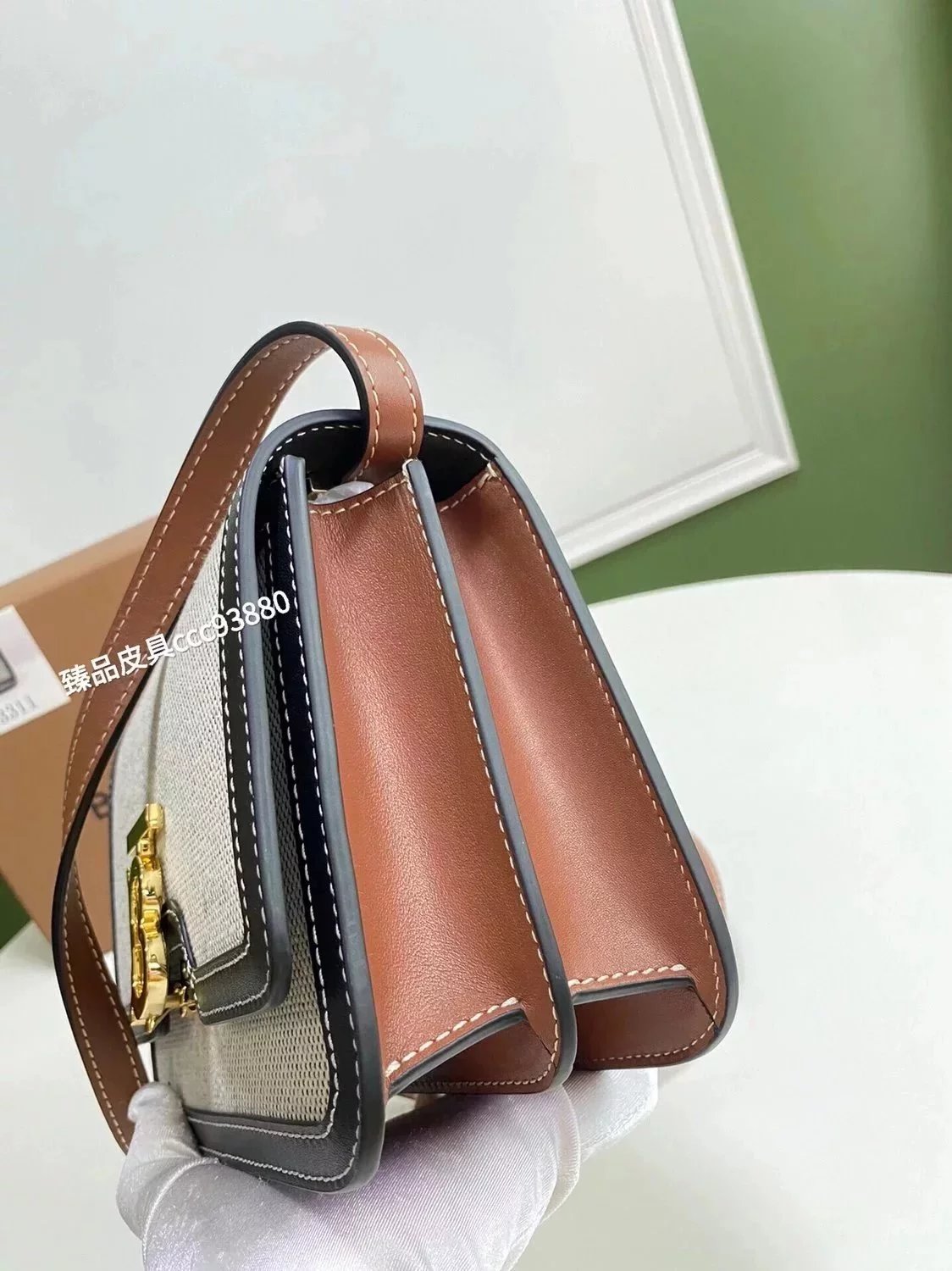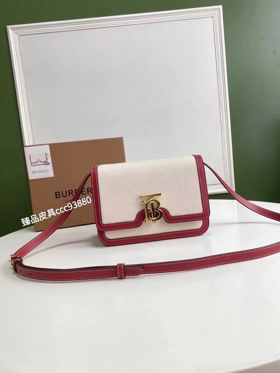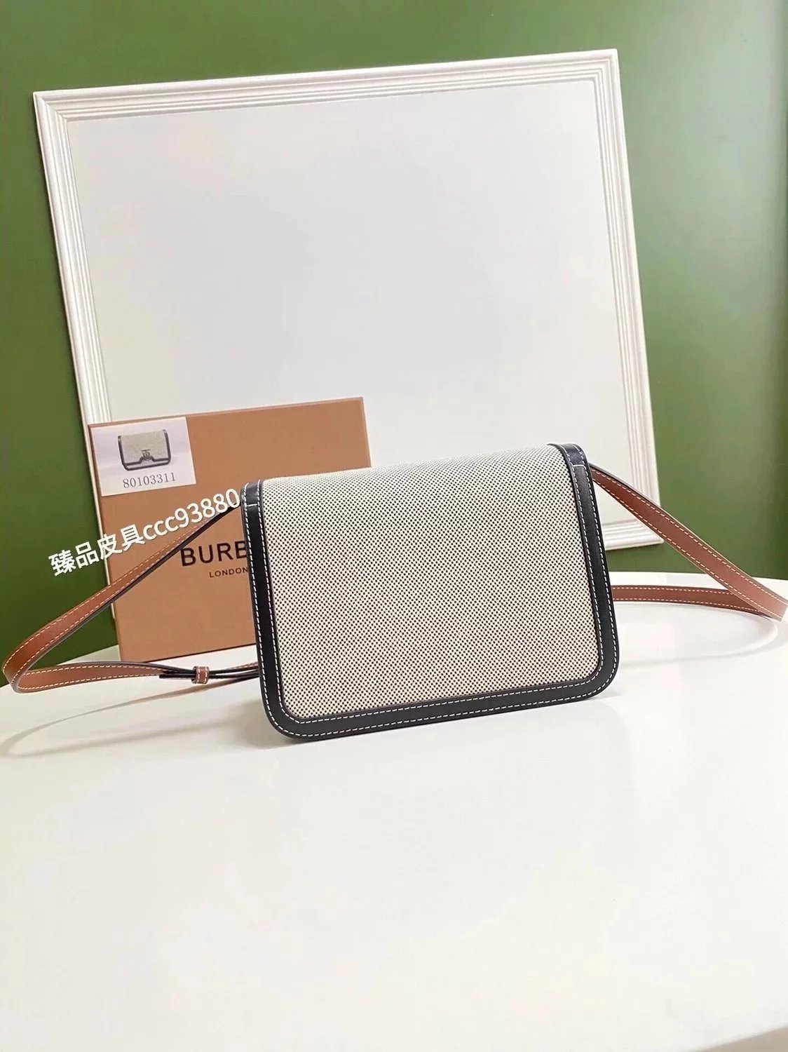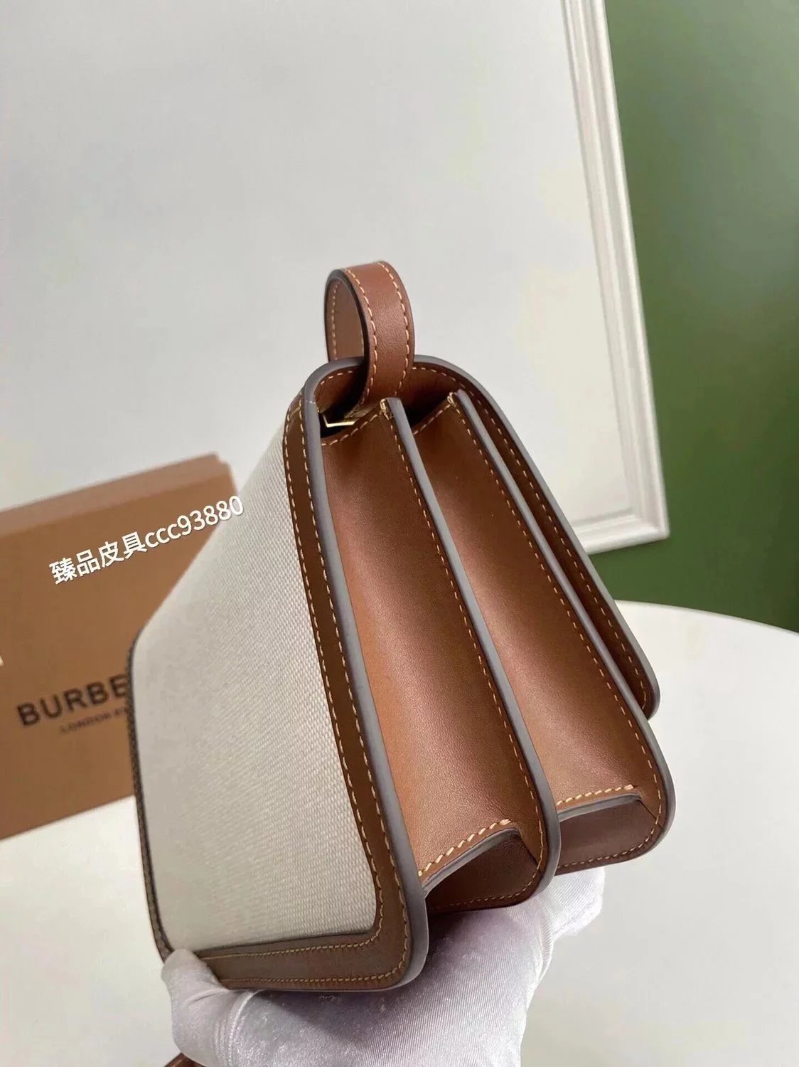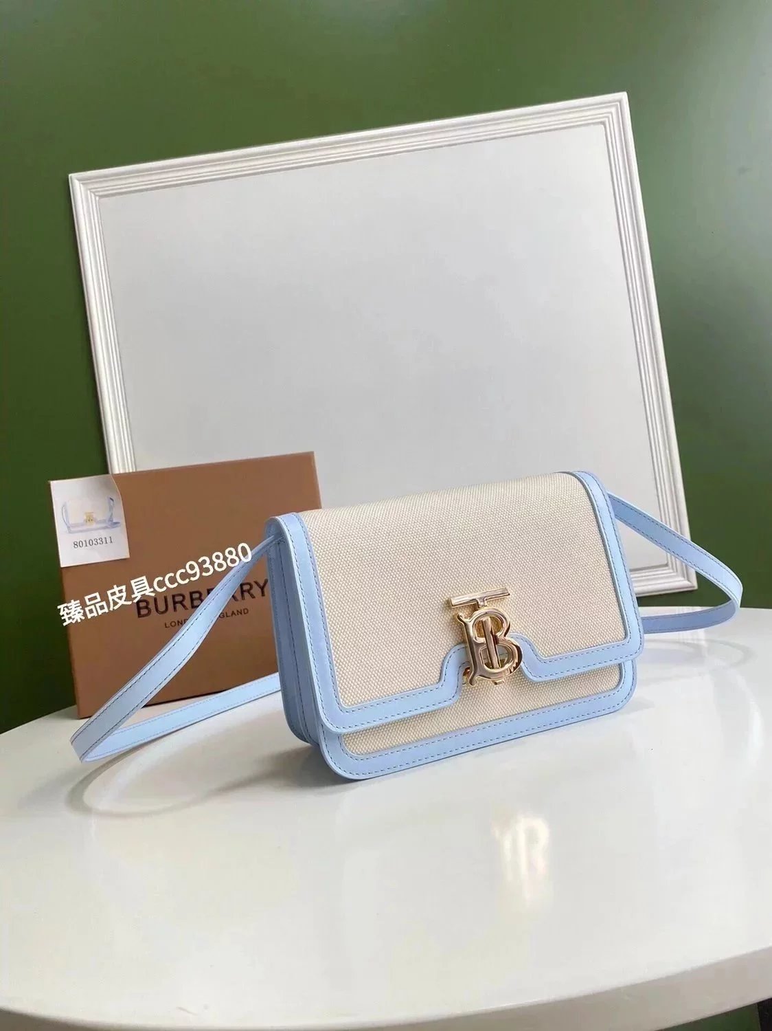 Burberry Women's Bag Top version 【Surrogate Shopping Edition】TB Bag New TB Twist Lock Bag Canvas Stitching Leather Crossbody Bag Women's Bag BOX Square Bag Stewardess Bag Box Bag Messenger Bags New Women's Bag