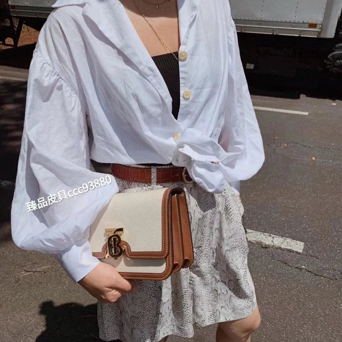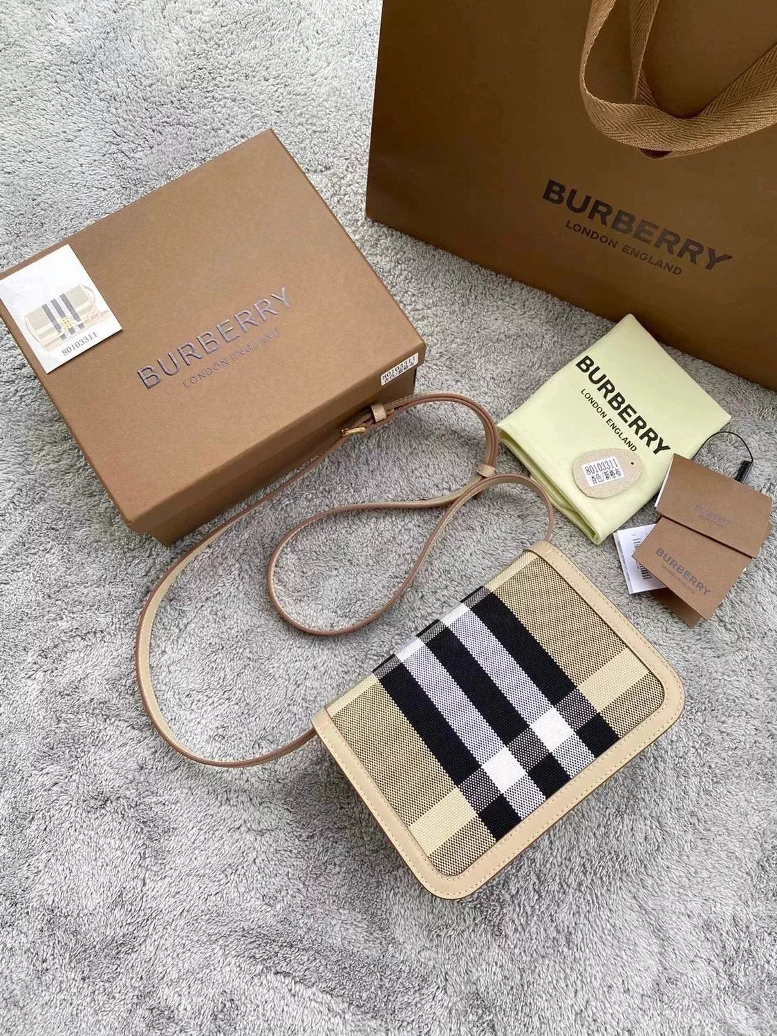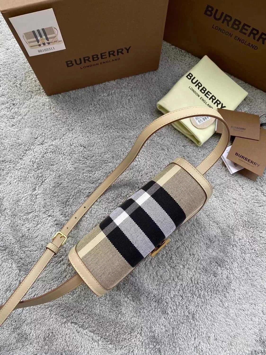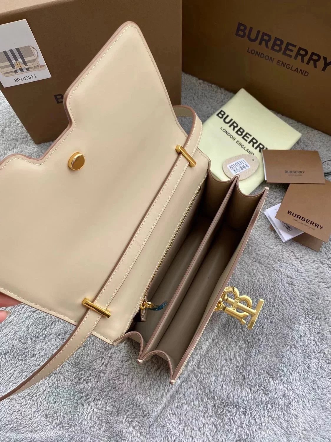 Burberry Women's Bag Top version 【Surrogate Shopping Edition】TB Bag New TB Twist Lock Bag Canvas Stitching Leather Crossbody Bag Women's Bag BOX Square Bag Stewardess Bag Box Bag Messenger Bags New Women's Bag