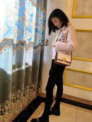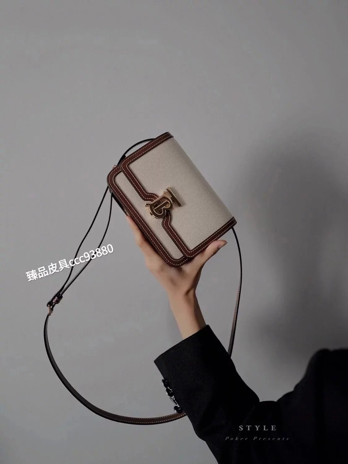 B's TB EXCLUSIVE Logo Two-Tone Canvas Stitching Leather Twist Lock Bag Version Upright Shoulder Bag, Lock Decoration Thomas Bur Inspired Exclusive Logo. Change to Messenger Bags Or Clutch.