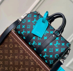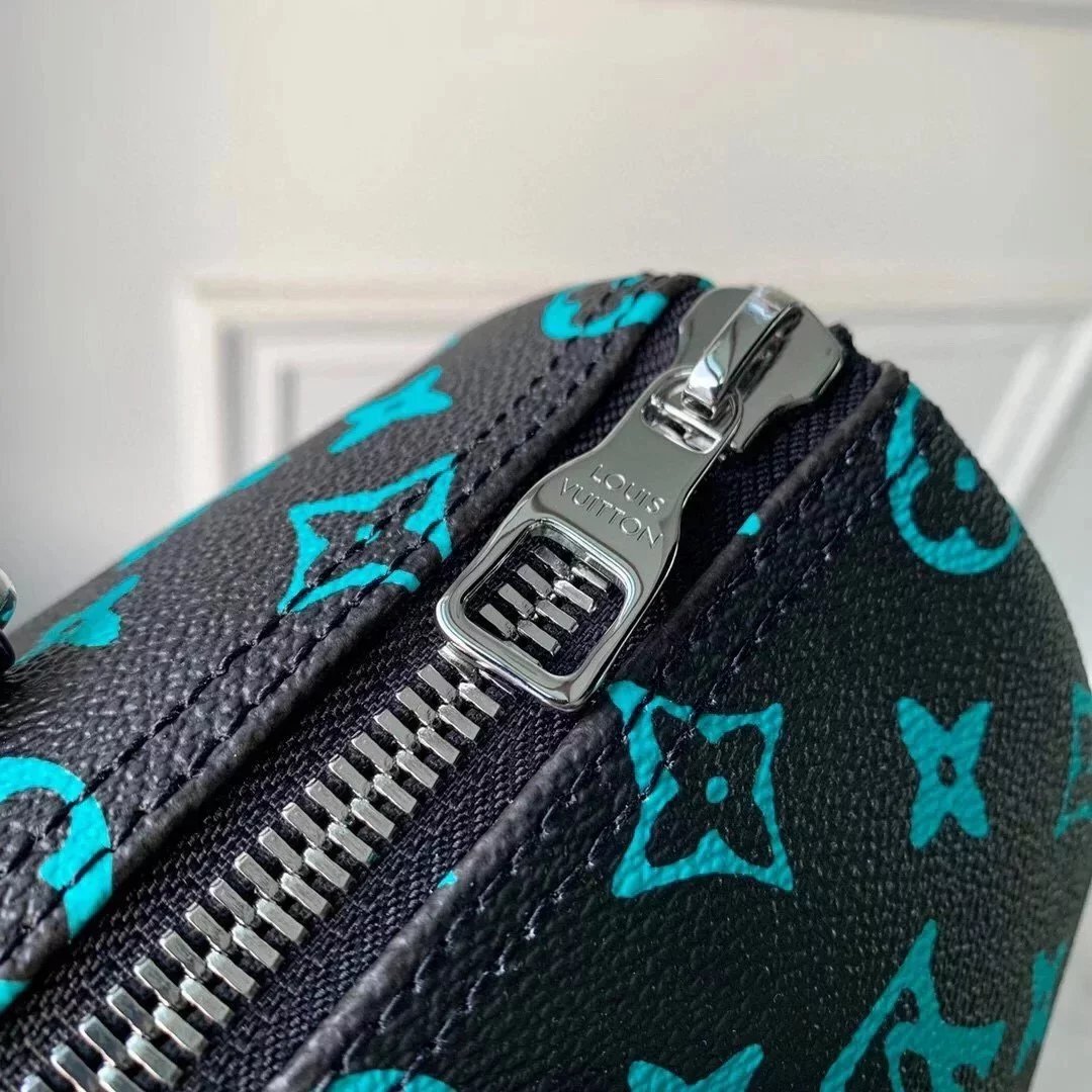 M21938 Blue and Green Flower Men's Pillow Bag Series This Keepall 25 Handbag Is Made of Monogram Eclipse Reverse Canvas, Showing the Elegance and Weight of Louis Vuitton Classic Pattern. Reinforced Streamers and Leather Brands Continue the Iconic Elements of Keepall Series, with Zipper Opening and Closing to Keep Personal Belongings Safe. Size: 25.0X15.0X11.0cm Instructions before Purchase