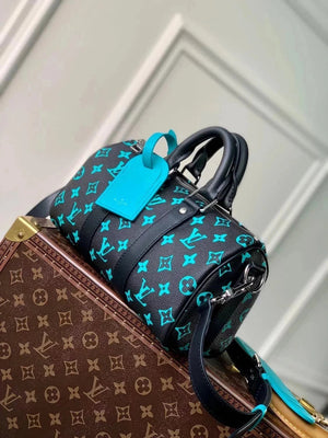 Louis Vuitton LV Men's Bag Top version 【Taiwan Goods】Look for the Original Picture Details M21938Blue and Green Flower Men's Pillow Bag Series Keepall25Handbag Material MonogramEclipseReverse Canvas,Elegant and Heavy with Classic Patterns.Reinforced Strea