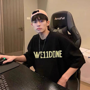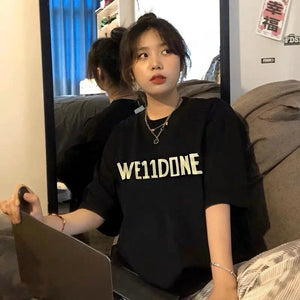 **Version We11done Tape Special-Interest Fashion Brand American Summer Pure Cotton Loose Male and Female Couple Short Sleeve T-shirt Ins round Neck Fashion Shopping Instructions