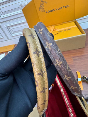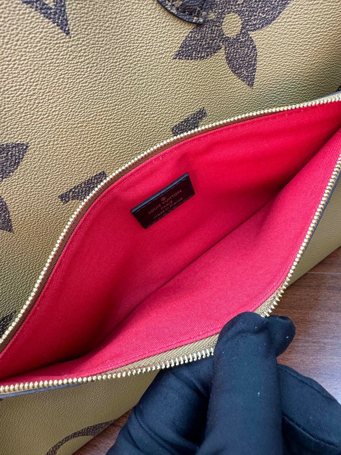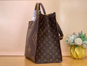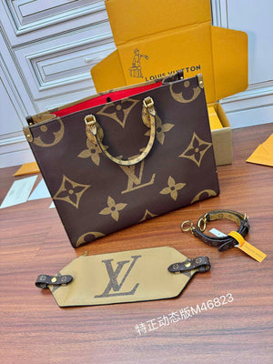 M46823 Presbyopic/Yellow Flower Cubic Bag Series Onthego Handbag Handbag M44576 Voyage Handbag One Side Is Giant Monogram Canvas, the Other Side Is Monogram Reverse, MQ Has Two-in-One Bag System: a Zipper Bag Is Hidden in the Intelligent Interior, it Can Be Worn as a Bag and Can Hold Passports and Mobile Phones. This Stylish Handbag Is Perfect for LV Horizon Suitcase; the Removable and Adjustable Shoulder Strap Allows Travelers to Take Hands-Free. Size 43X33X18.5cm.