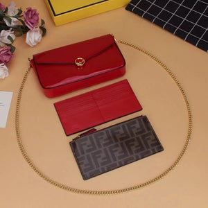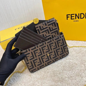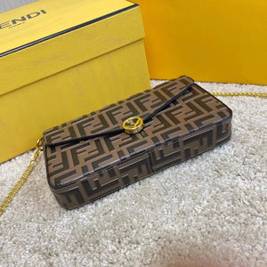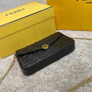 FENDI Women's Bag Top version Three-in-One Embossing WOC Chain Bag Presbyopic LOGO Embossed Double F Underarm Bag Shoulder Crossbody Clutch Women's Bag
