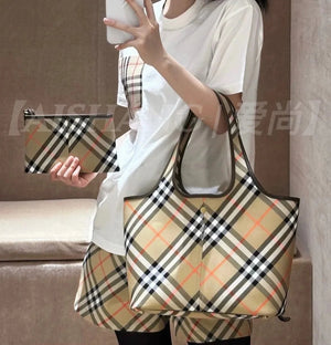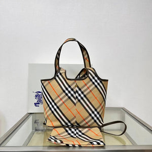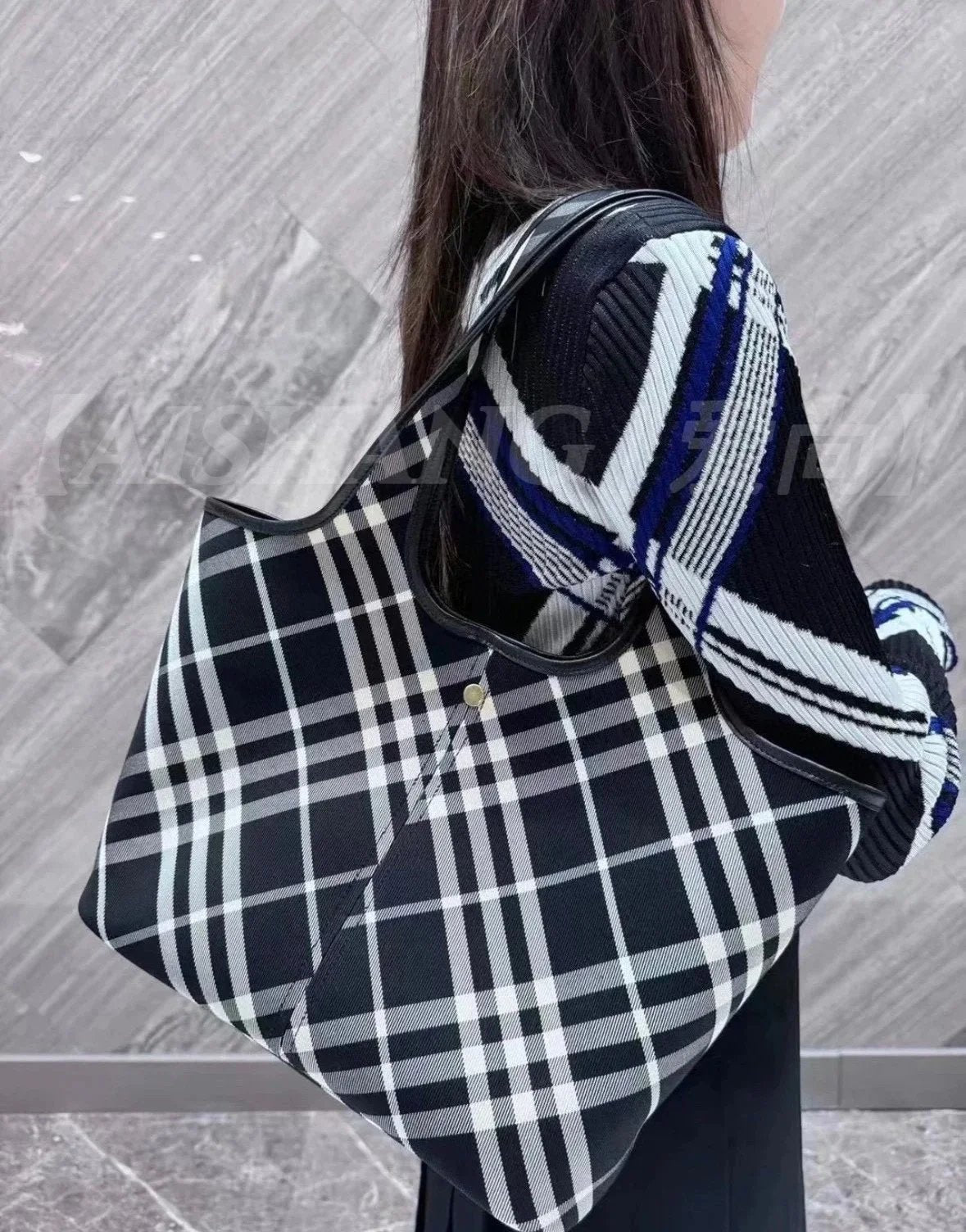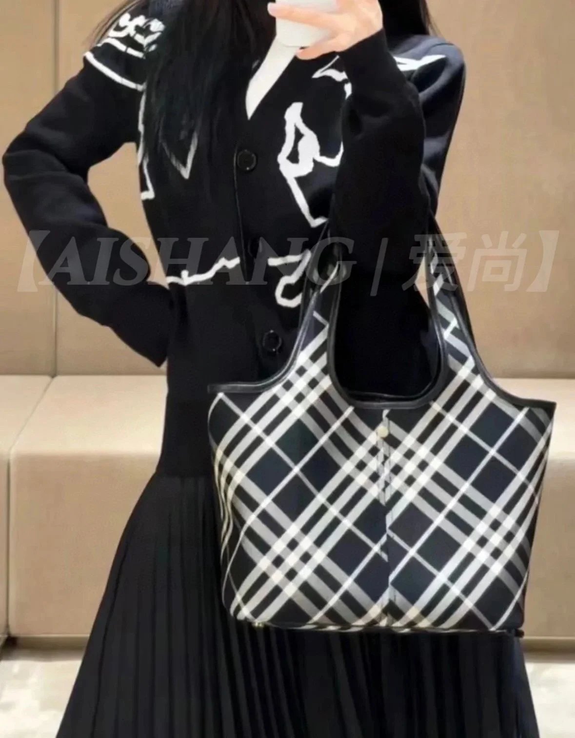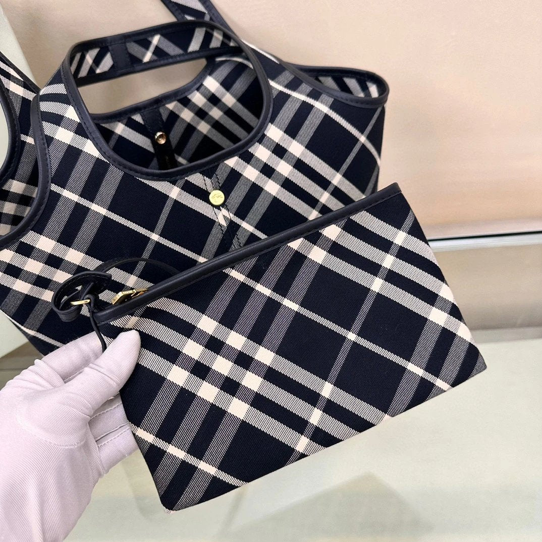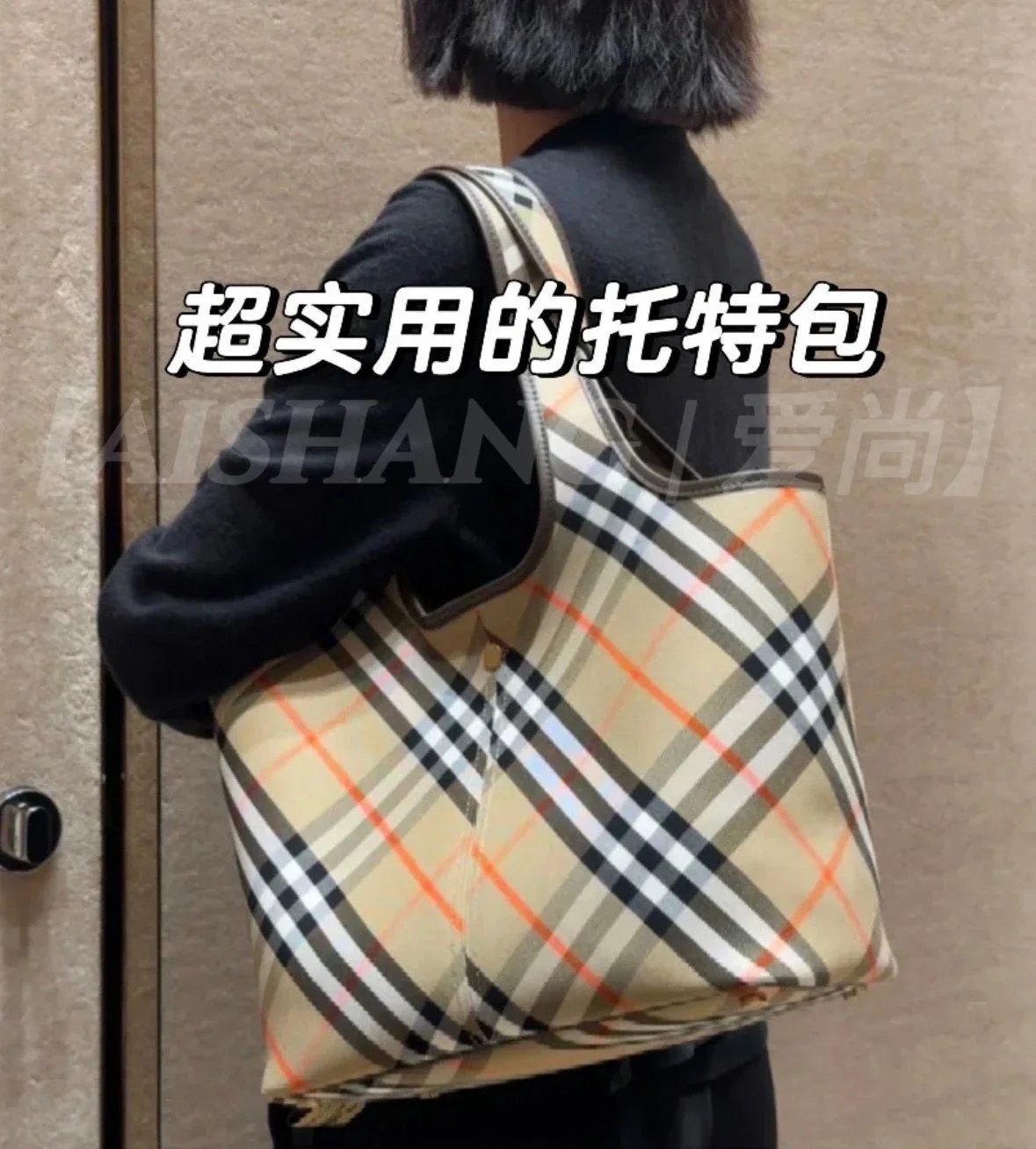Burberry Women's Bag Top version 【Treasure Item】24New Soft Upright Tote Tote Bag Twill Waterproof Fabric Women's One Shoulder Handbag Shopping Bag Mummy Bag