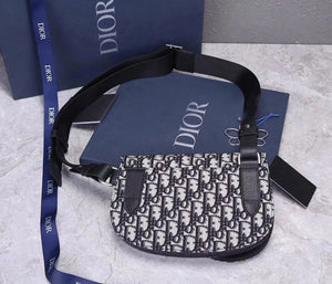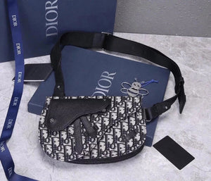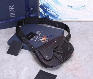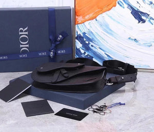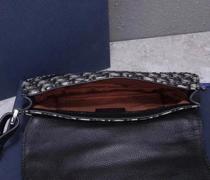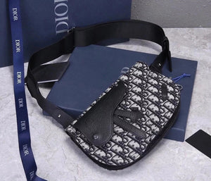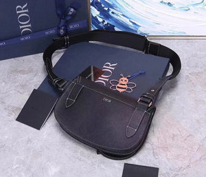 Dior Men's Bag Top version 【Version Original Leather】Gift for Personal Use with Counter Packaging Handbag Saddle Canvas Black with Old Flowers Calfskin Saddle Bag Shoulder Messenger Bag Waist Bag Chest Bag Bag Men's and Women's Bags