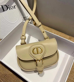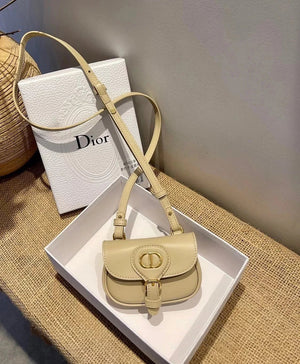 Home Dior Women's Bag Top version Women's Bag New Bobbymicro Series Super Mini Saddle Bag Glossy Cow Leather Buckle Shoulder Messenger Bag