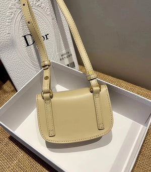 Dior Women's Bag Top version Women's Bag New Bobbymicro Series Super Mini Saddle Bag Glossy Cow Leather Buckle Shoulder Messenger Bag