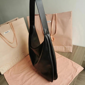 Miu Miu Bag Top version Women's Bag2022Autumn and Winter New hobo Underarm Bag Cowhide Large Capacity Totes High-Grade Shopping Bag One-Shoulder Portable Commuter Bag Idle Style Simple All-Matching Bag Leather Very Soft