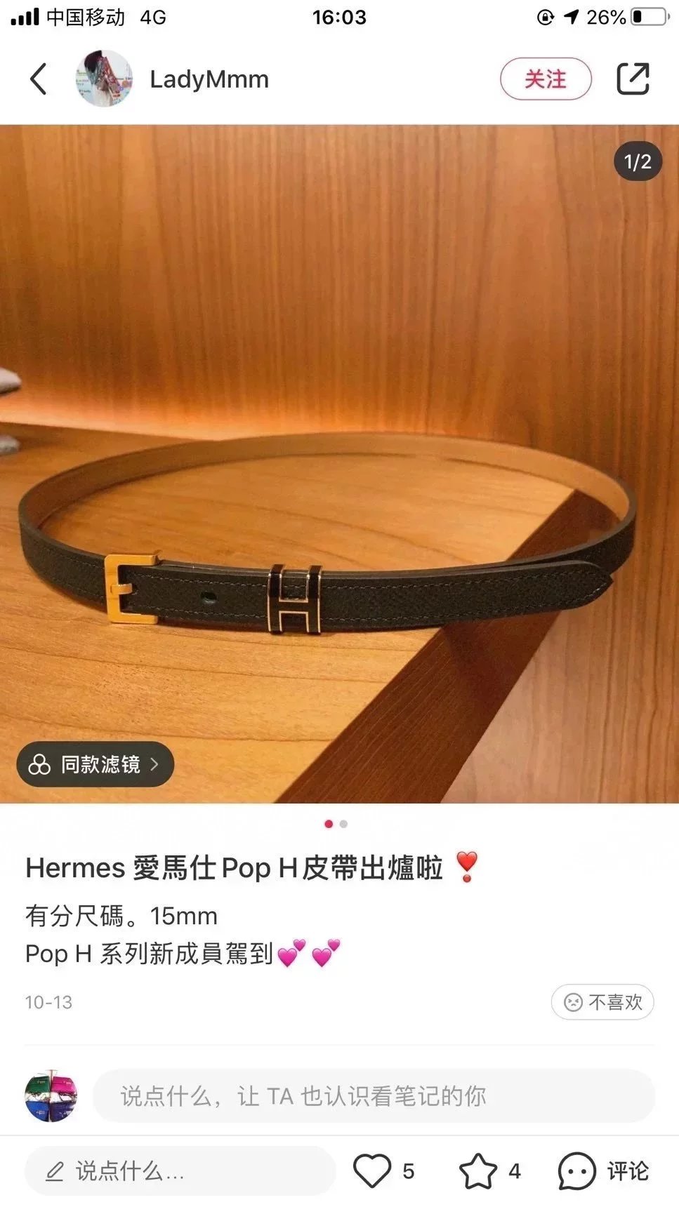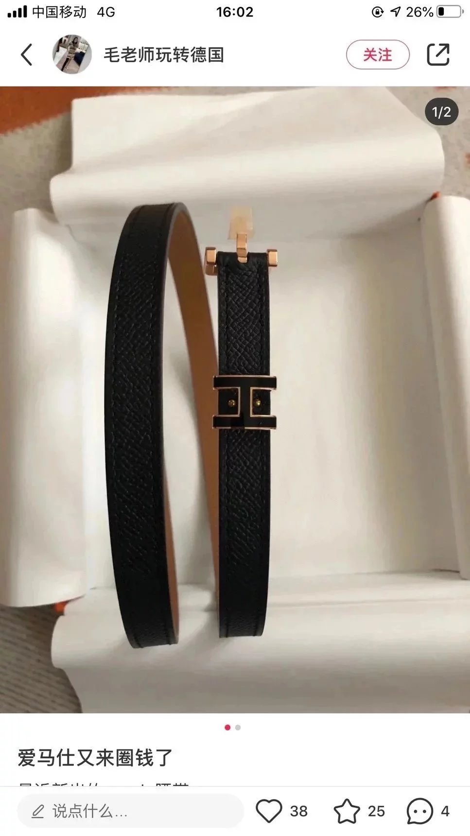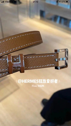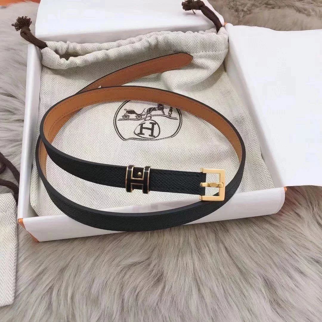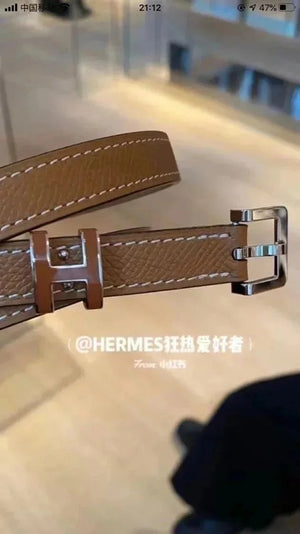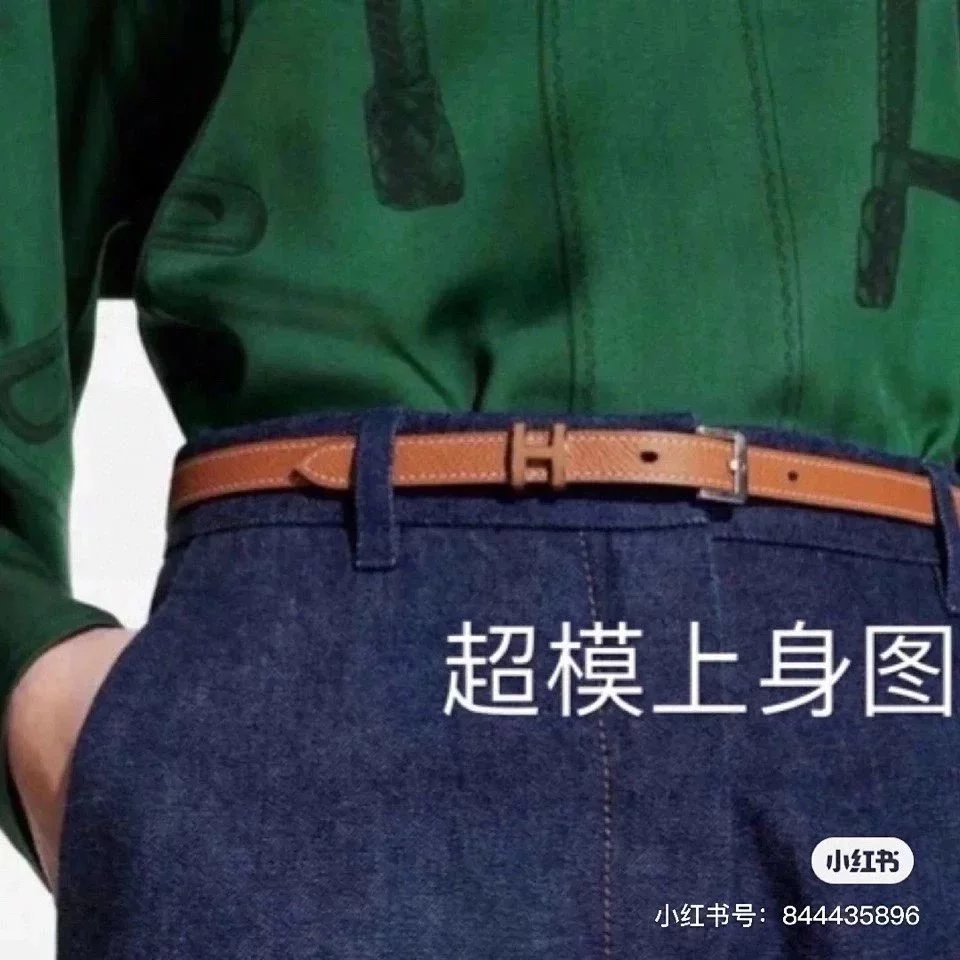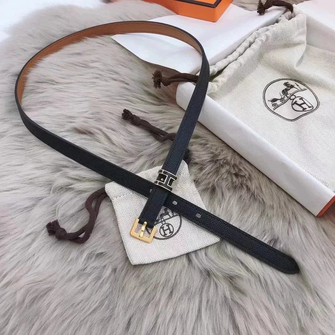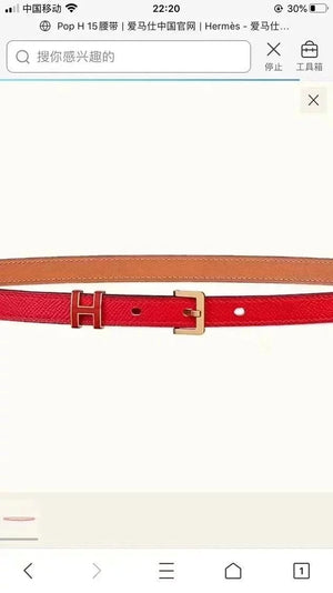 Hermes Belt Top version Women's Belt1.5cmEspom Palm Print Top Layer Calfskin Double-Sided Letters h Buckle Belt Female Casual Versatile Belt Female