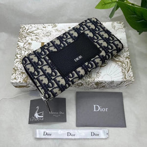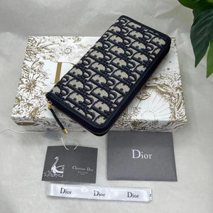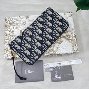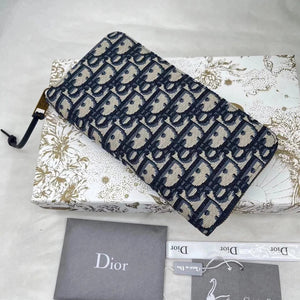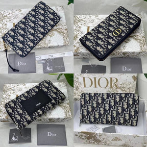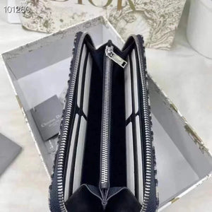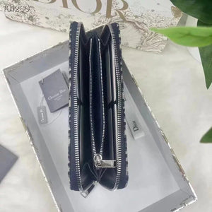 Dior Women's Bag Top version Women's Long Zip Wallet Wallet Clutch Cowhide Embroidered Wallet Female Wallet Wallet Clutch