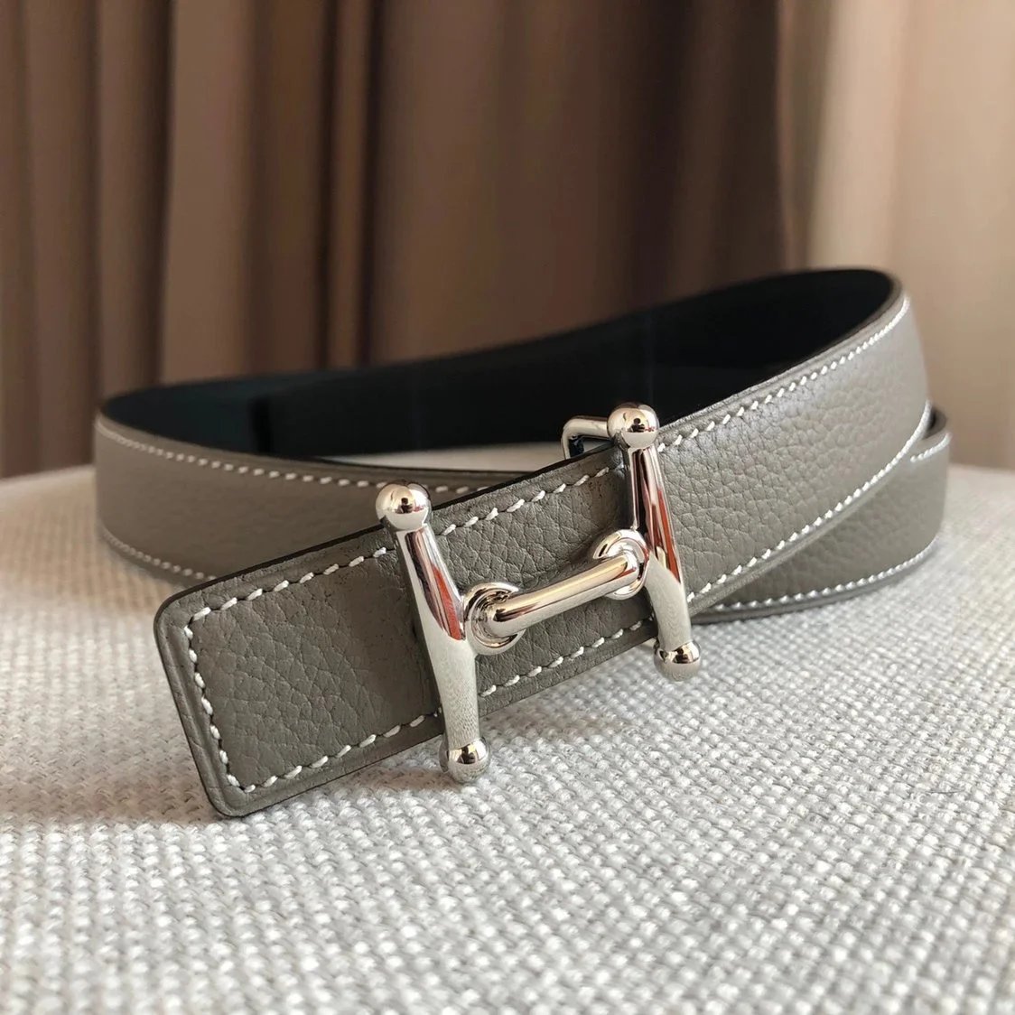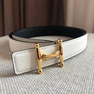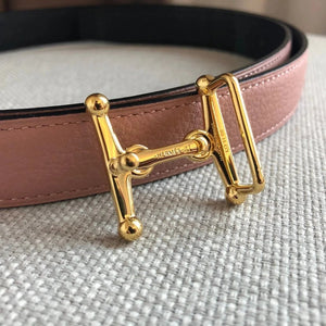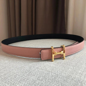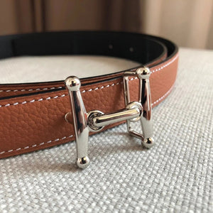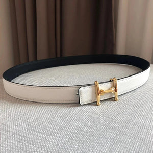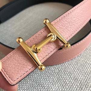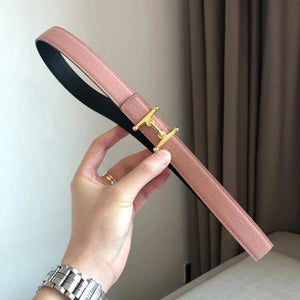 **Original Order High Quality Hermashi Women's Belt First Layer Calfskin Double-Sided Letters H Buckle Casual Fashion All-Matching Belt 2.4cm Note before Purchase