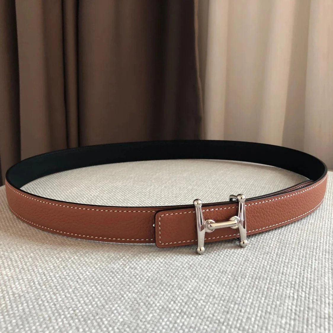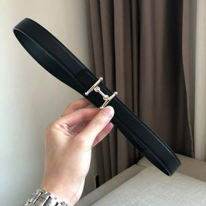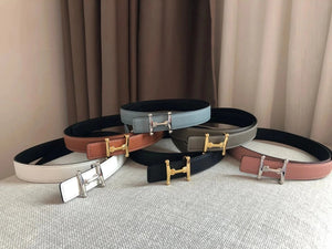 Hermes Belt Top version Women's Thin Belt Double-Sided Imported First Layer Calfskin Double-Sided Letters h Buckle Belt Skirt Shaped Accessory Women's Belt2.5Centimeter Wide