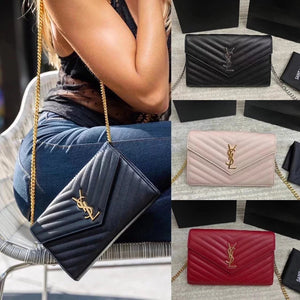 YSL Women's Bag Top version Yang Shulin WOC Envelope Package Chain Bag Women's Bag Crossbody Bag Caviar Cowhide woc Large Chain Bag22.5cm377828