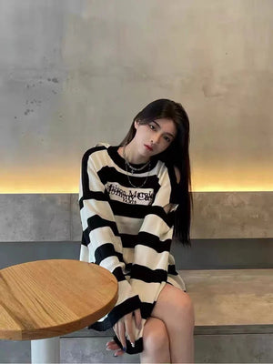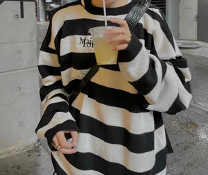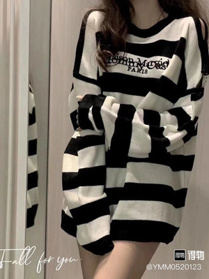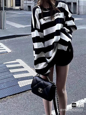 Maison Margiela Sweater Top Version Yangmi Same Product Black and White Striped Sweater Women's Sweater