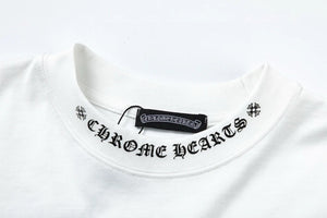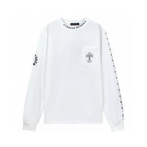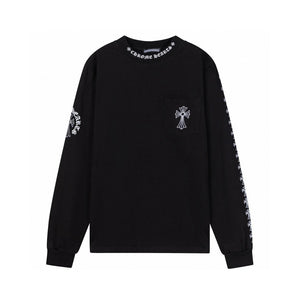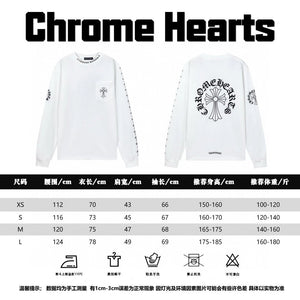 Chrome Hearts Hoodie Top Version2024New Fashion Brand Sanskrit Letter Printing Blue Letter Horseshoe Cross Pure Cotton Men's and Women's Long Sleeve T T-shirt