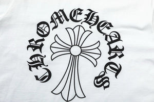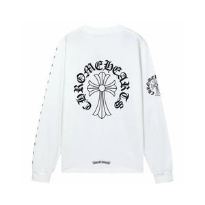 **Version Ch2024 New Fashion Brand Sanskrit Letter Printing Blue Letter Horseshoe Cross Pure Cotton Men's and Women's Long-Sleeved T-shirt before Purchase Instructions