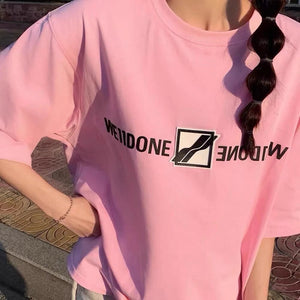 **Version We11done Track 2024 Summer Mirror Flip Badge Short Sleeve T-shirt Well Loose Half Sleeve Men's and Women's Pre-Purchase Instructions