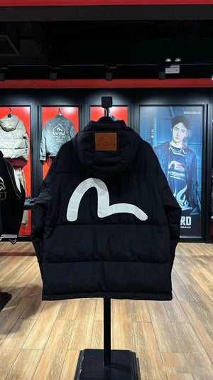Evisu Down Jacket Top Version2024Winter New Men's Seagull Printed Hooded Outdoor down Jacket Jacket Jacket
