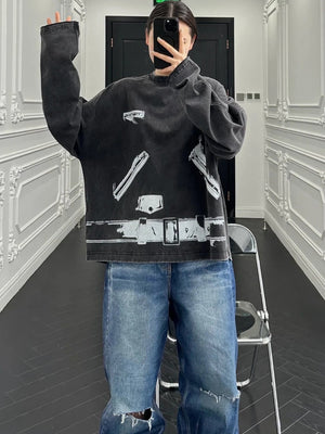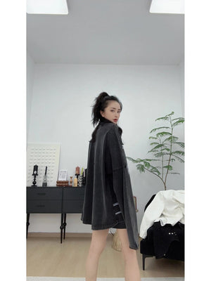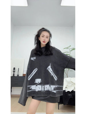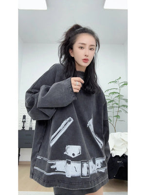We11done Hoodie Top Version20Spring and Summer New Dark Gray Printed Long-Sleeved Top T T-shirt for Men and Women