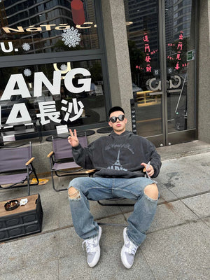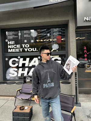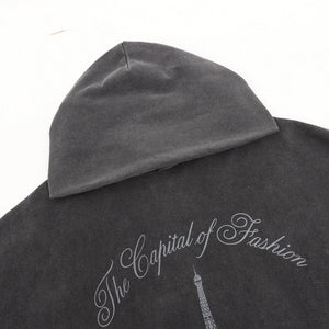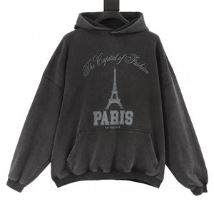 Balenciaga Hoodie Tower Printing Washed Hooded Sweater for Men and Women
