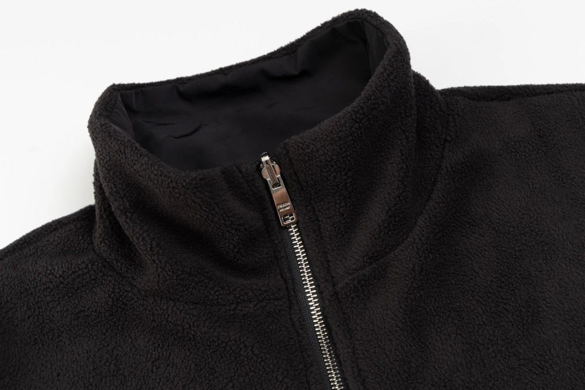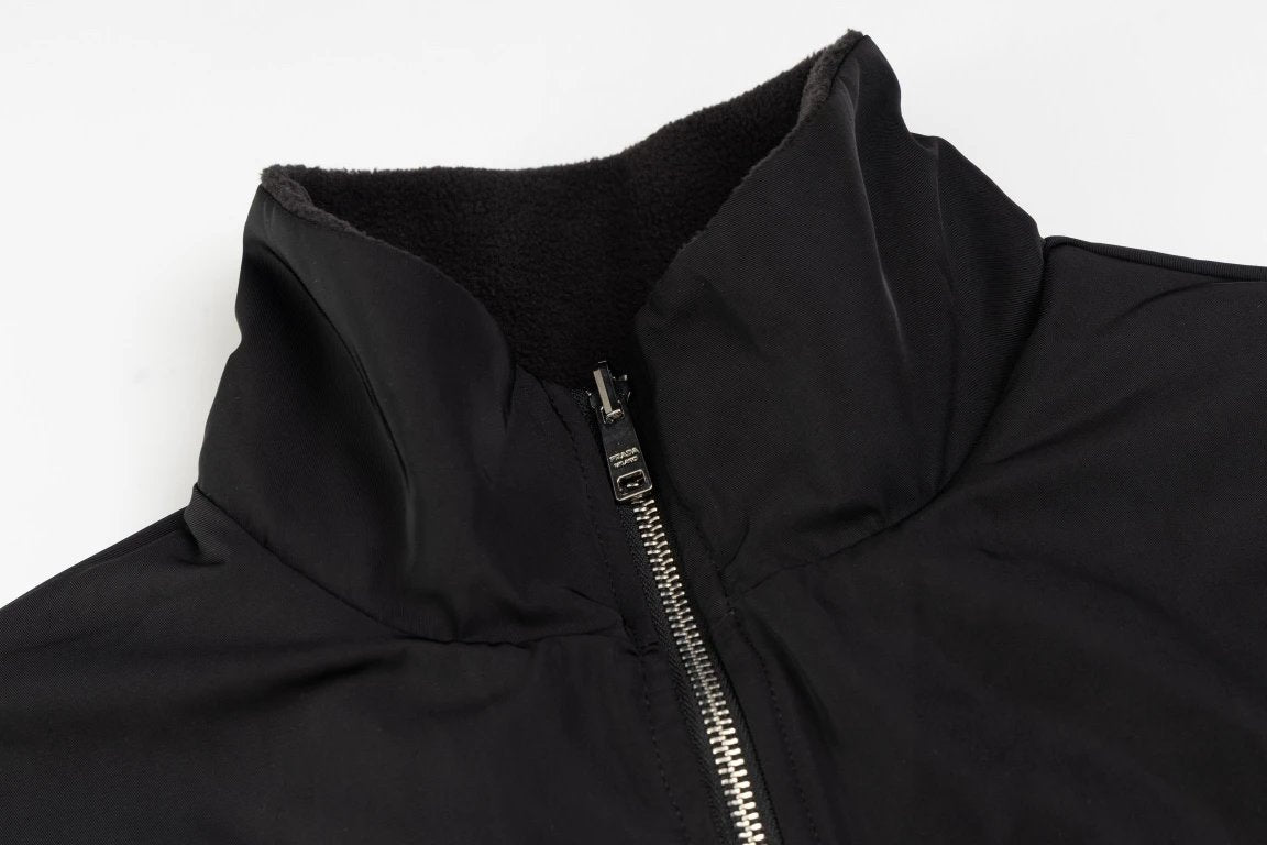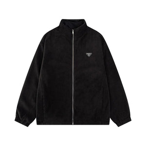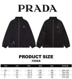 PRADA Jackets Triangle Logo Reversible Fleece Jacket Unisex Autumn Winter New Sports Casual Loose Fit Versatile
