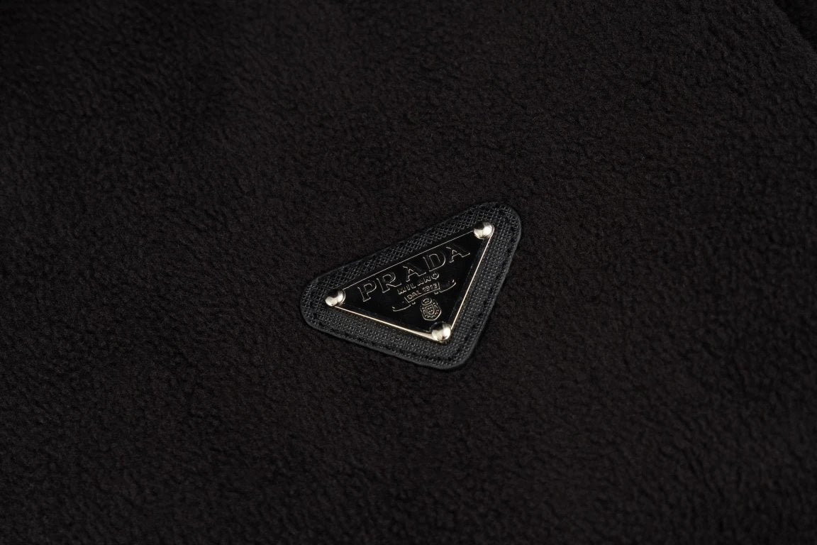 Top Version P*ad Prada Triangle Logo Reversible Fleece Jacket Unisex Autumn Winter New Sports Casual Loose Fit Versatile