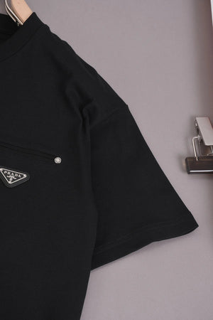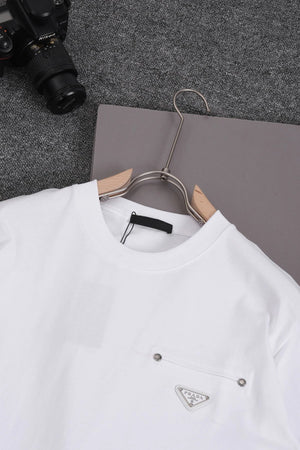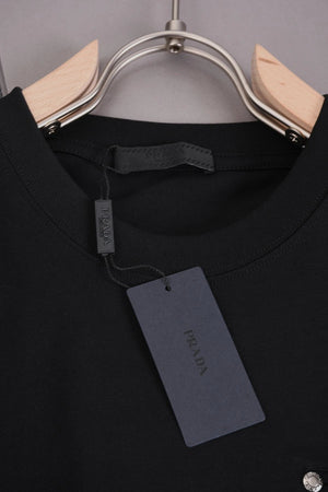 PRADA T-shirt Triangle Logo Studded logo round Neck Short Sleeve25ss New Pure Cotton Unisex Style T T-shirt Base Shirt Tee Shirt OS Loose design