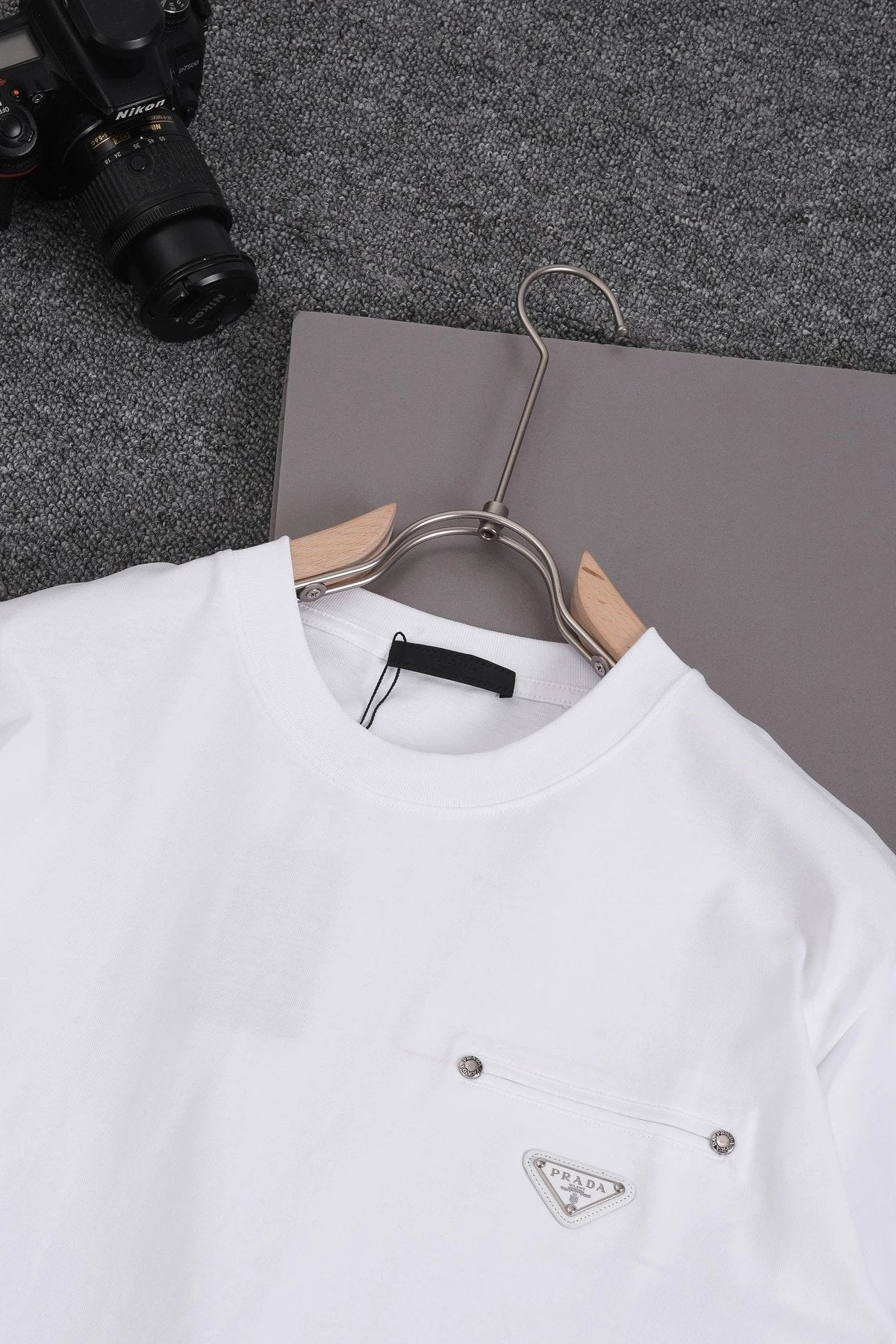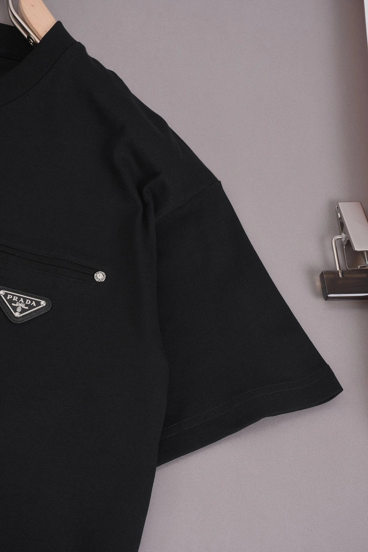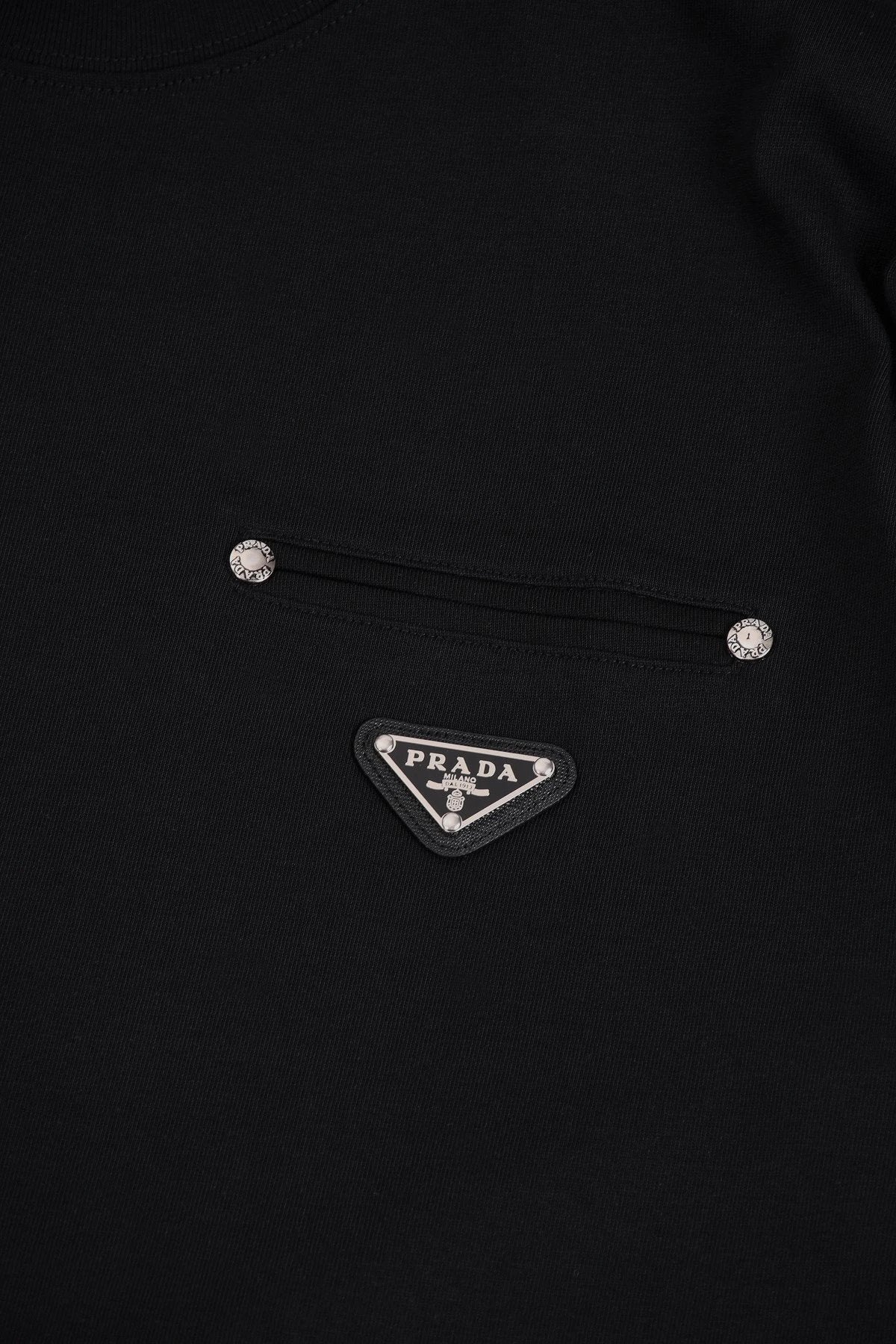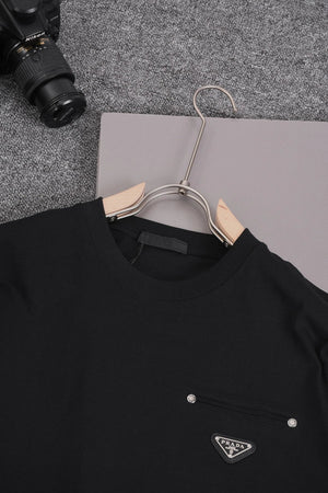 Top Version PAD Prada Triangle Logo Studded Round Neck Short Sleeve 25SS New Pure Cotton Unisex P House T-Shirt Base Shirt Loose Fit Pre-Purchase Instructions