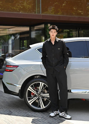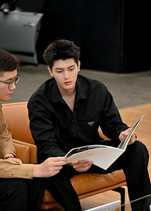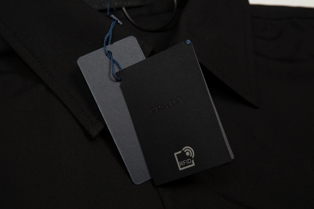 Prada Triangle Logo Zipper Pocket Shirt Long Sleeve Unisex Versatile Business Casual Slim Fit P House Jacket Pre-Purchase Instructions