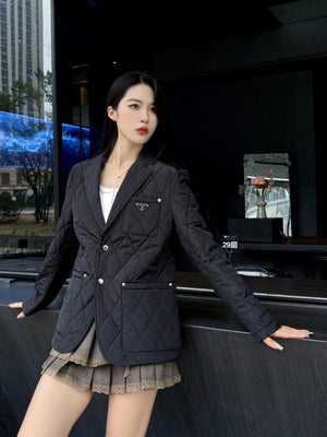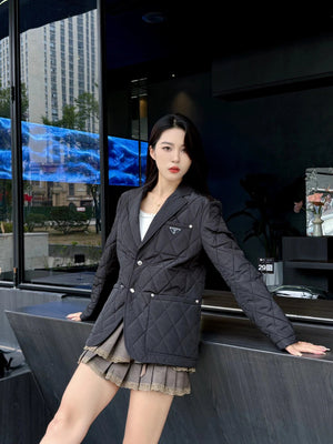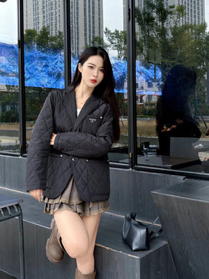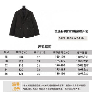 PRADA Down jacket Triangle Mark Chest Pocket Thin Cotton Coat for Men and Women