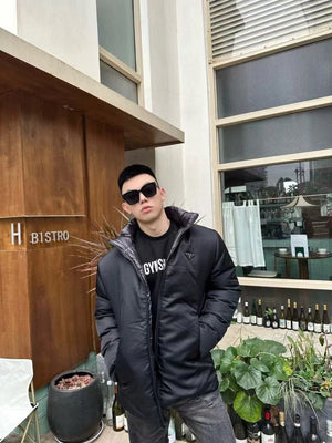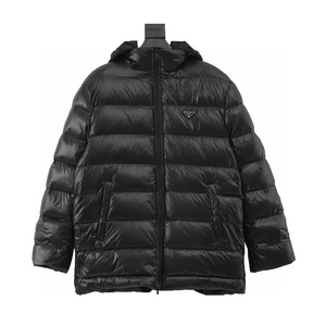 PRADA Down jacket Triangle Mark Nylon Bread Double-Sided Hooded down Jacket Men and Women Same Style