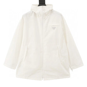 PRADA Jackets Triangle Mark Pocket Poplin Hooded Jacket for Men and Women