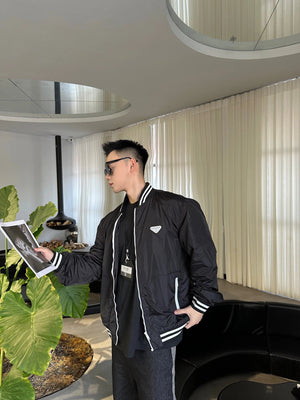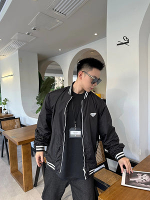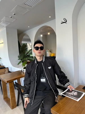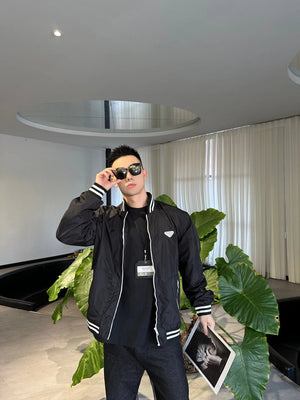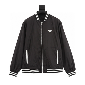 PRADA Jackets Triangle Mark Ribbon Woven Zipper Coat for Men and Women
