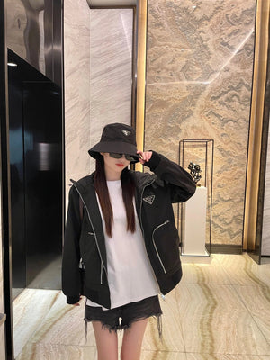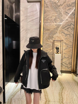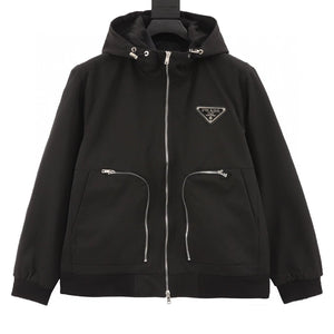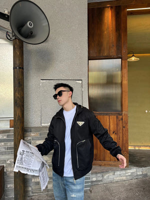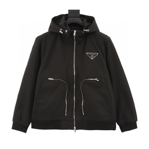 PRADA Jackets Triangle Mark Zipper Hooded Jacket for Men and Women