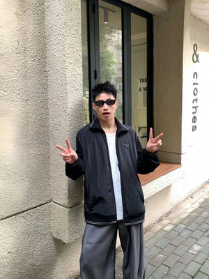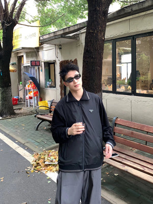 PRADA Jackets Triangle Sign Stand Collar Zipper Jacket Jacket for Men and Women