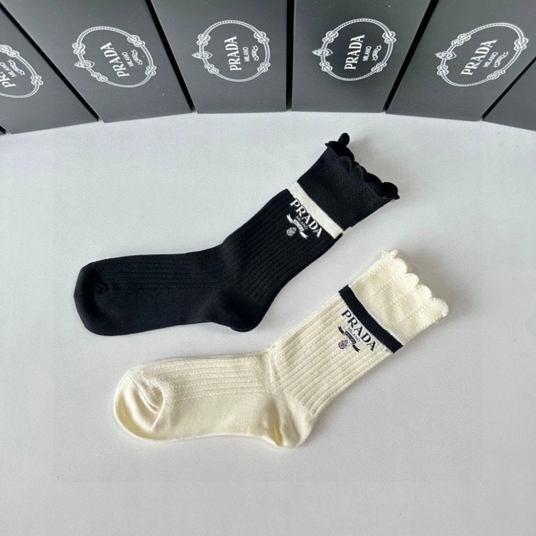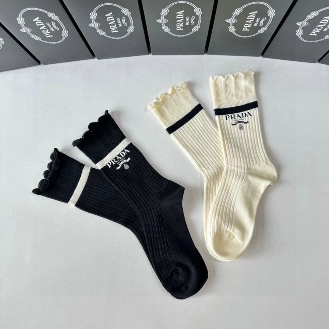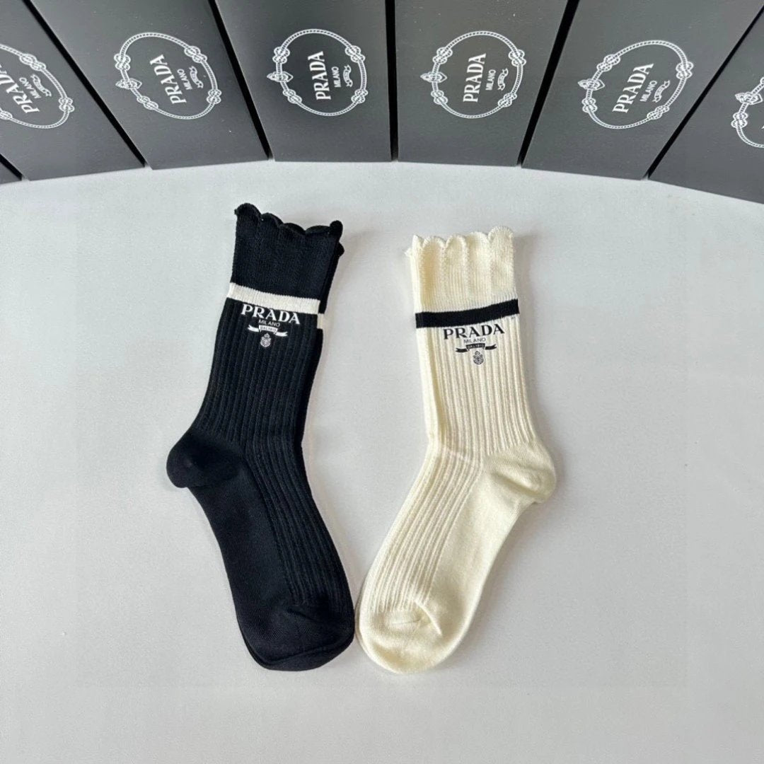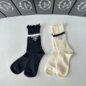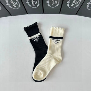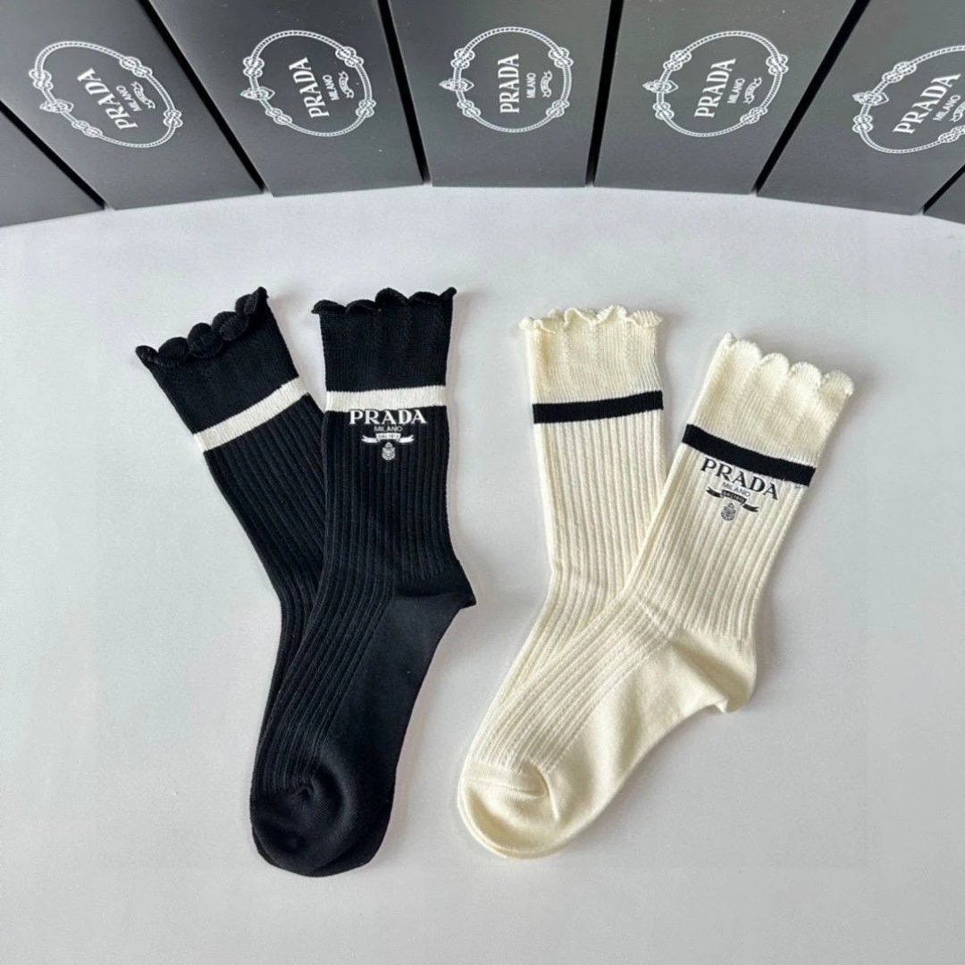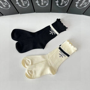 PRADA Sock 【Two Pairs in a Box】Classic Letters logo Breathable and Stylish Pure Cotton Slouch Socks25ss New Short Tube Cotton Socks Thin Business Sports Casual Spring Summer Autumn Versatile Deodorant Sweat-Absorbing