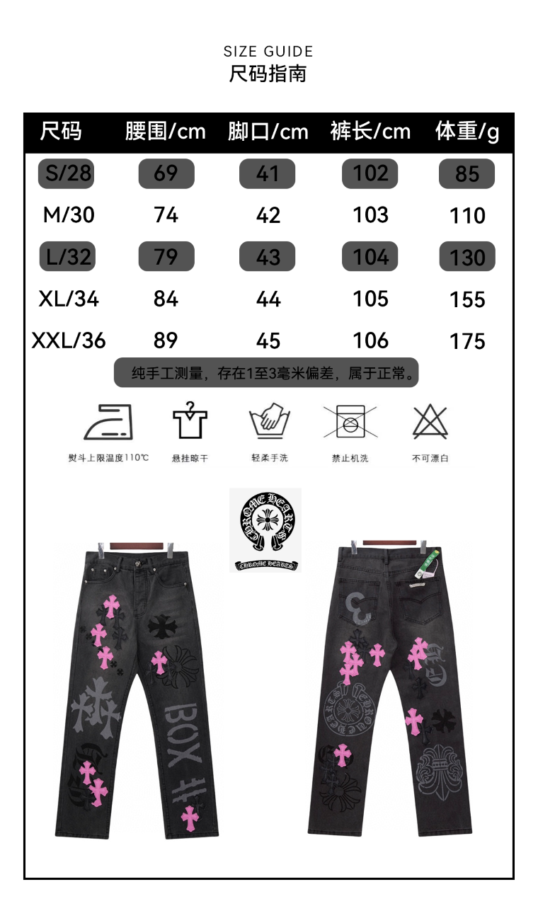 • Sizes: S, M, L, XL, XXL (corresponding to sizes 28, 30, 32, 34, 36), in stock for immediate dispatch. Pre-purchase instructions